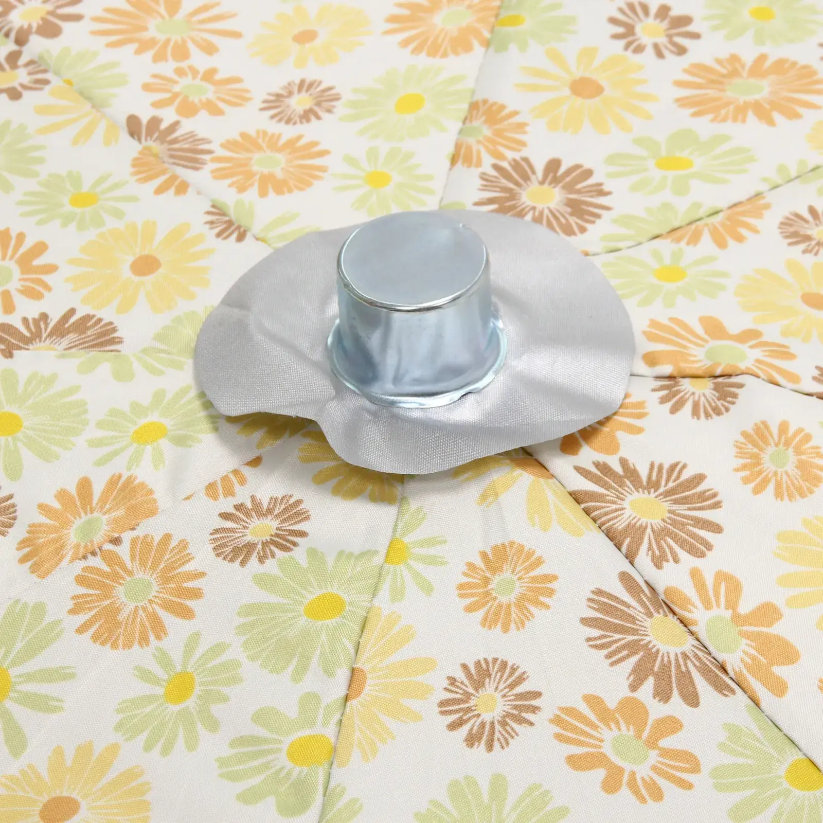 Зонт легко открывается и закрывается с помощью центрального механизма, что делает его использование простым и удобным. Он идеально подходит для пляжного отдыха, пикников и дачных выездов.