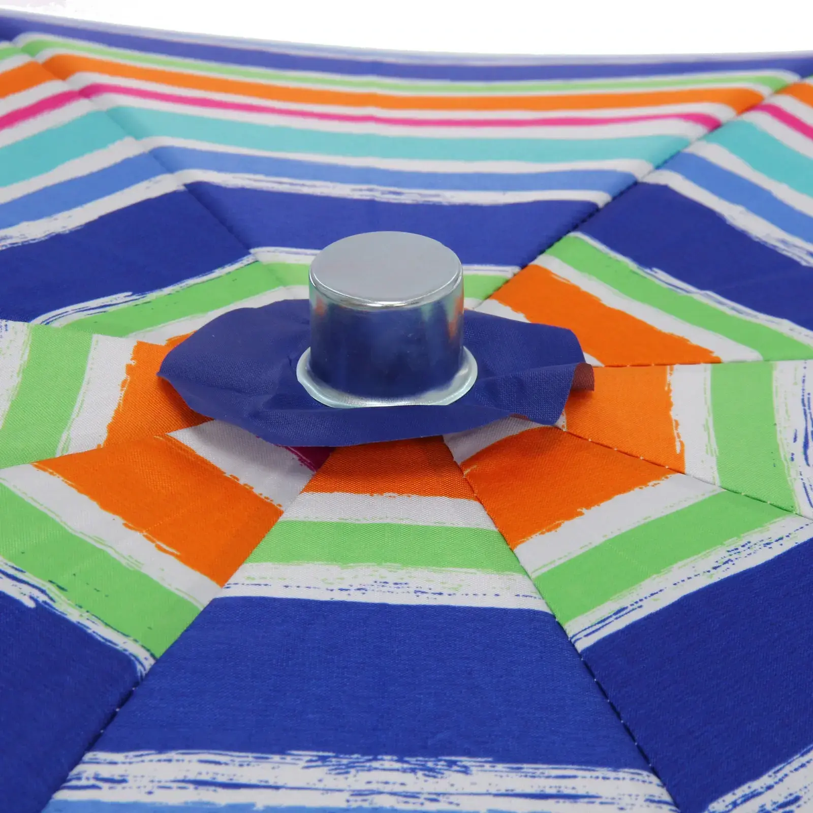 Этот зонт легко устанавливается благодаря складному дизайну и специальным колышкам, которые надежно фиксируют его на песке. Шнурок для регулировки высоты позволяет адаптировать зонт под любые условия, обеспечивая максимальный комфорт. Он идеально подходит для пляжа, пикника или отдыха в саду.