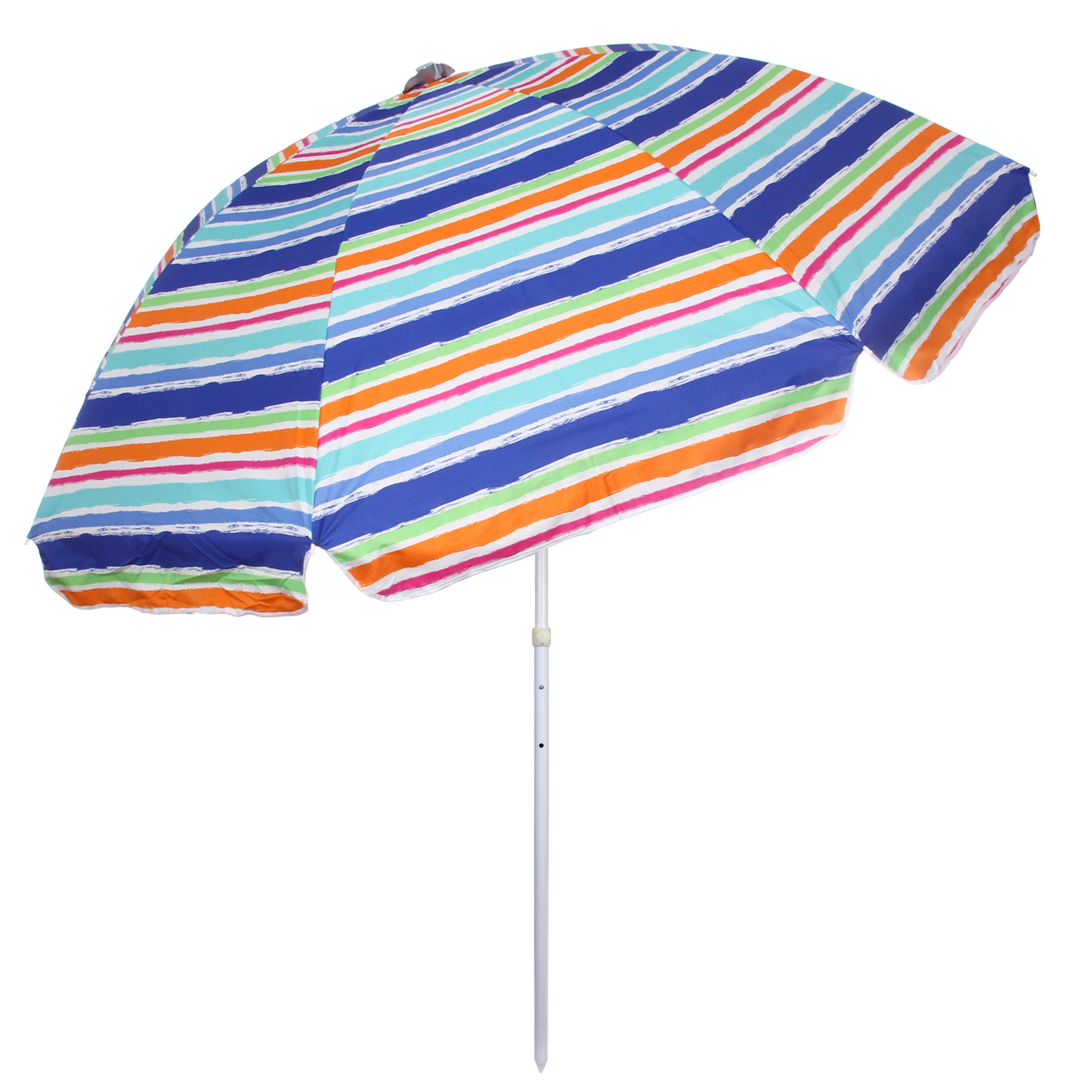 Зонт выполнен из качественных материалов: металлический каркас и водоотталкивающее текстильное покрытие обеспечивают долговечность и надежность. Его размеры (D=240 см, h=220 см) делают его идеальным для использования на пляже или в саду. Не упустите возможность сделать ваш отдых более комфортным с этим замечательным пляжным зонтом!