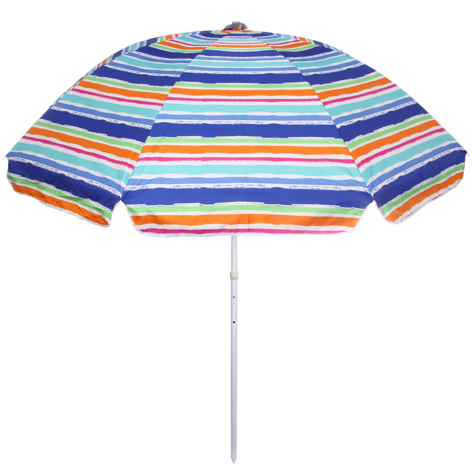 Этот зонт подходит для всех, кто ценит комфорт и защиту от солнца. Его складная конструкция позволяет легко транспортировать и хранить зонт. Яркий и привлекательный дизайн с разноцветными полосами добавит стильный акцент на любом пляже.