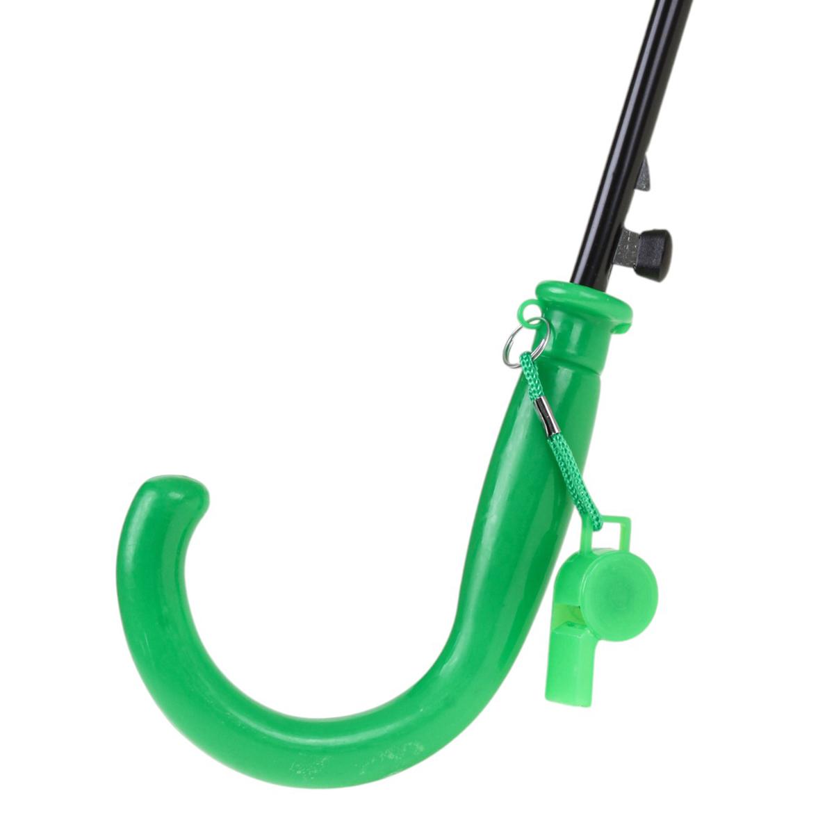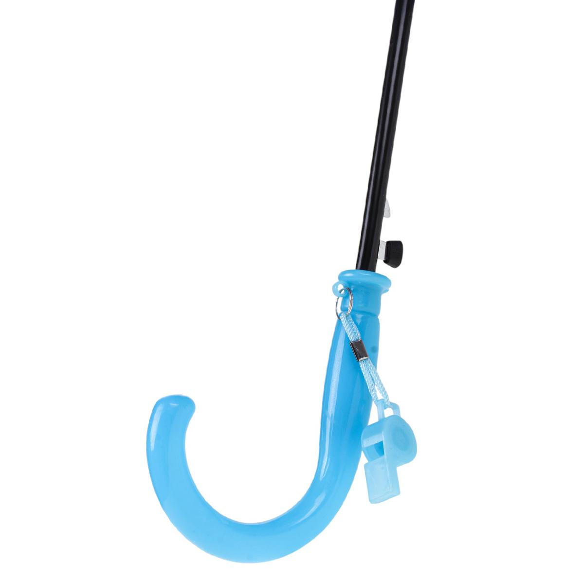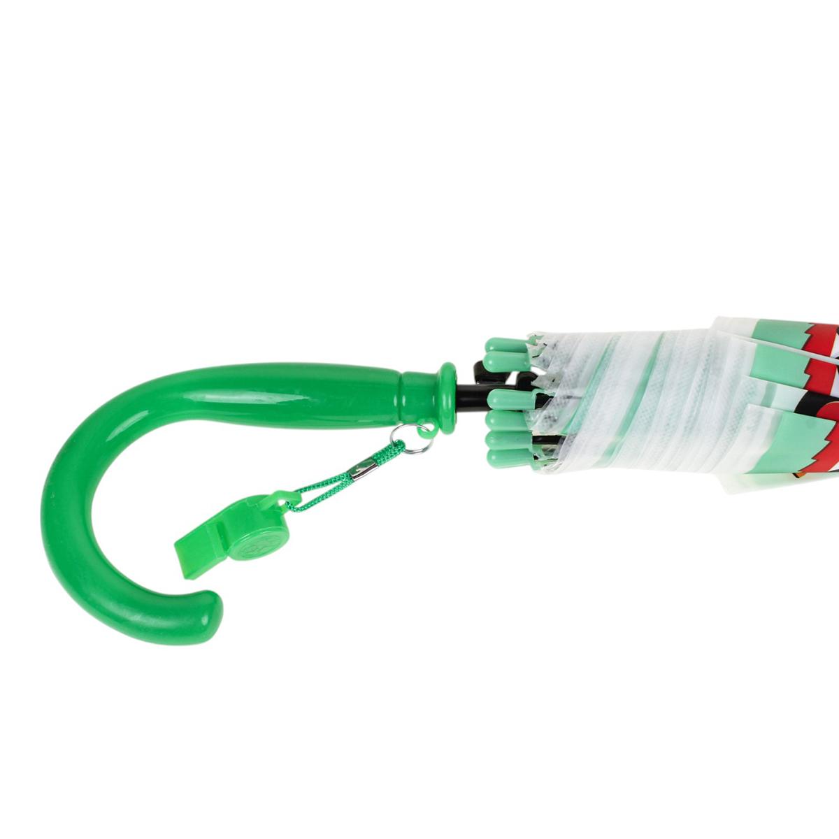 Зонт открывается и закрывается вручную; в сложенном виде застегивается на кнопку. Он подходит для повседневной эксплуатации и прогулок под дождем. На ручке установлен свисток, который может пригодиться на прогулке. Купол выполнен из полиэтилена, каркас из металла и пластика — сочетание прочности и легкости.