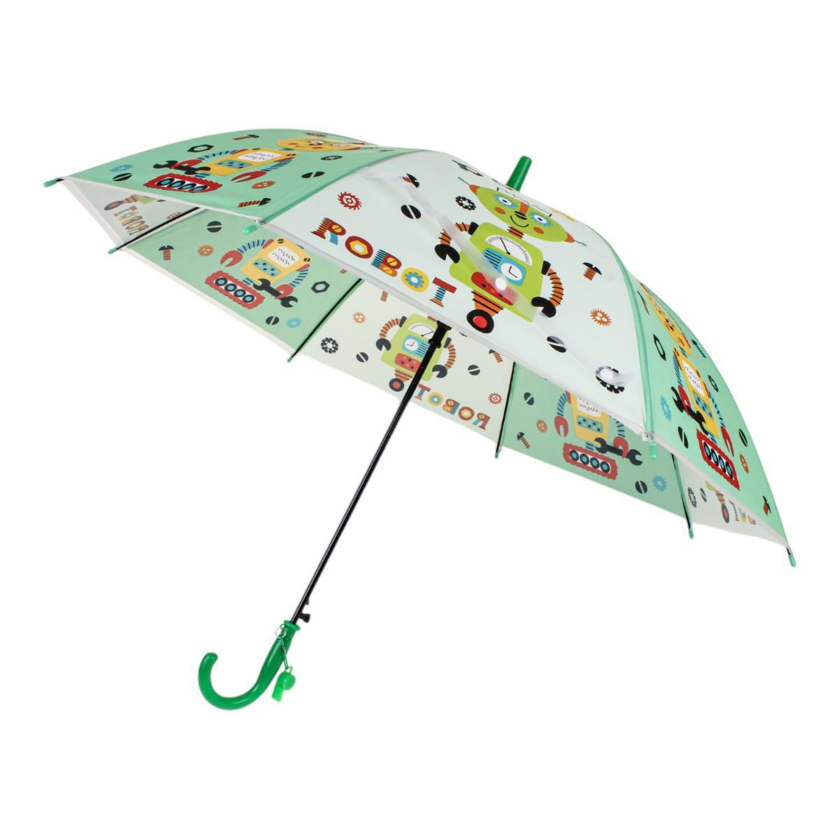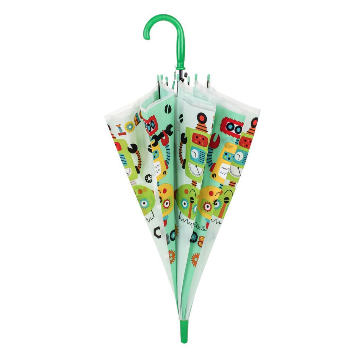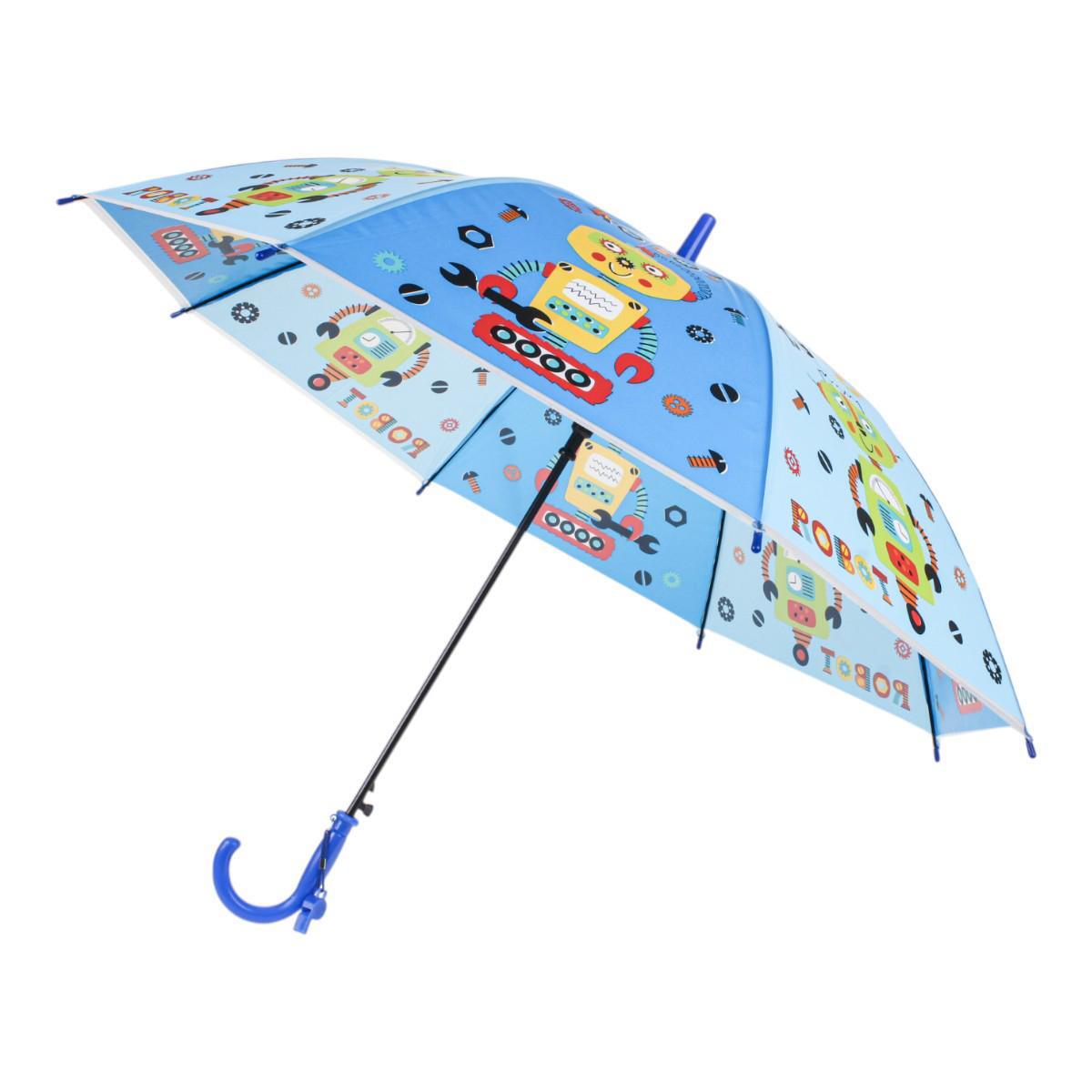 Этот детский зонт сочетает яркий дизайн в стиле робототехники и надежную защиту от дождя. Сиреневый купол украшен мультяшными роботами и превращает дождливый день в маленькое приключение. Легкая и прочная конструкция обеспечивает комфортное использование детям.