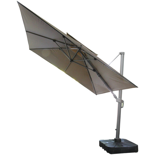 Зонт представлен в бежевом цвете, который гармонично впишется в любой ландшафт. Подставка черного цвета обеспечивает устойчивость конструкции, а квадратная форма позволяет удобно разместить зонт на любой поверхности. Размеры зонта и его прочная конструкция делают его идеальным выбором для защиты от неблагоприятных погодных условий.