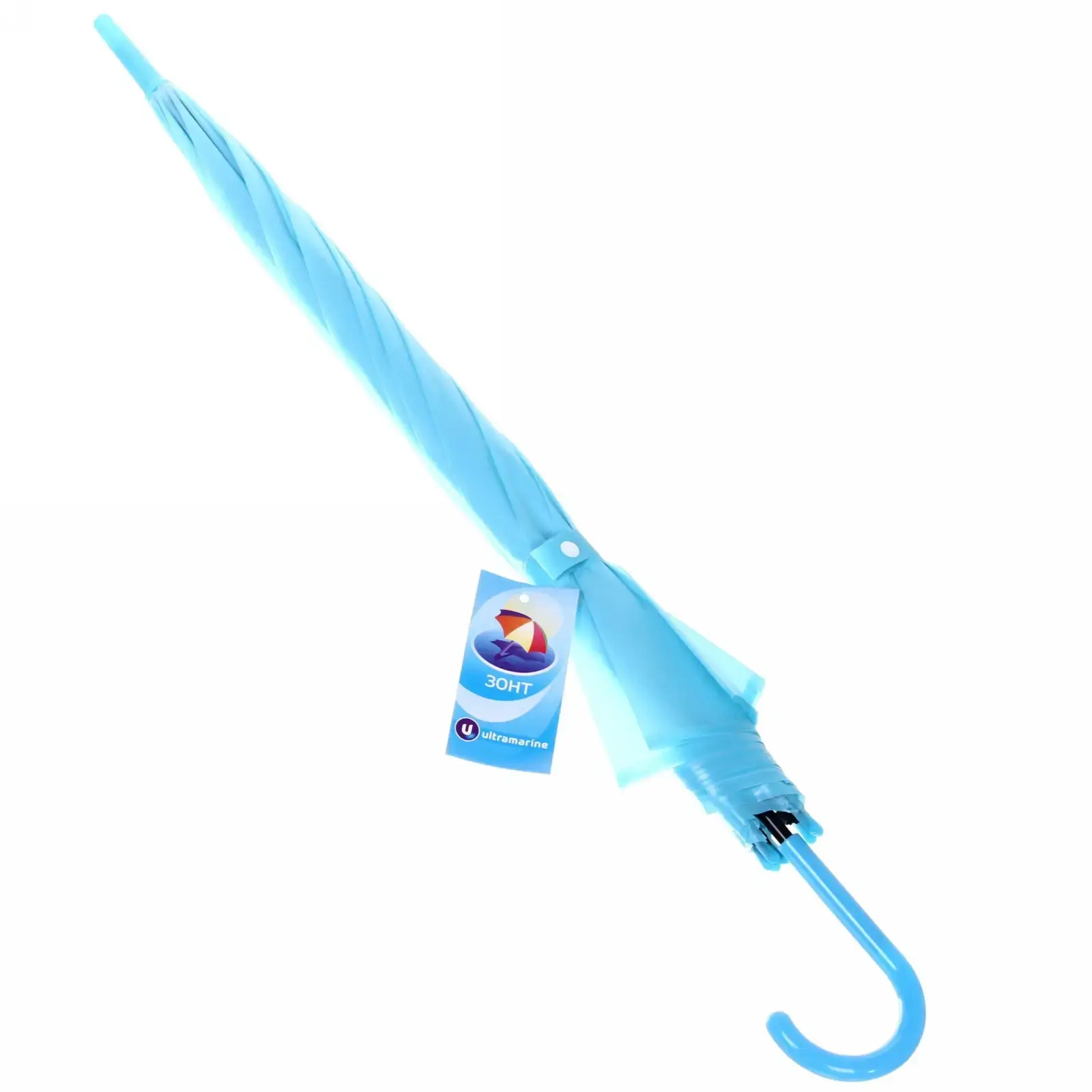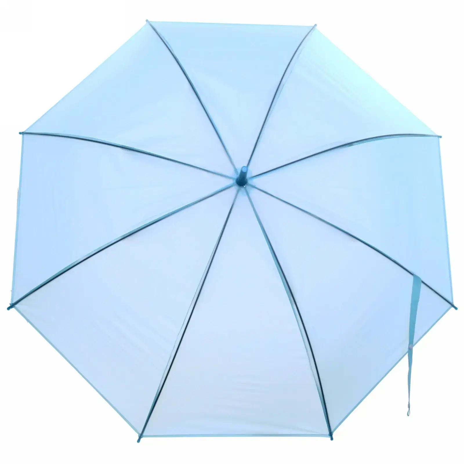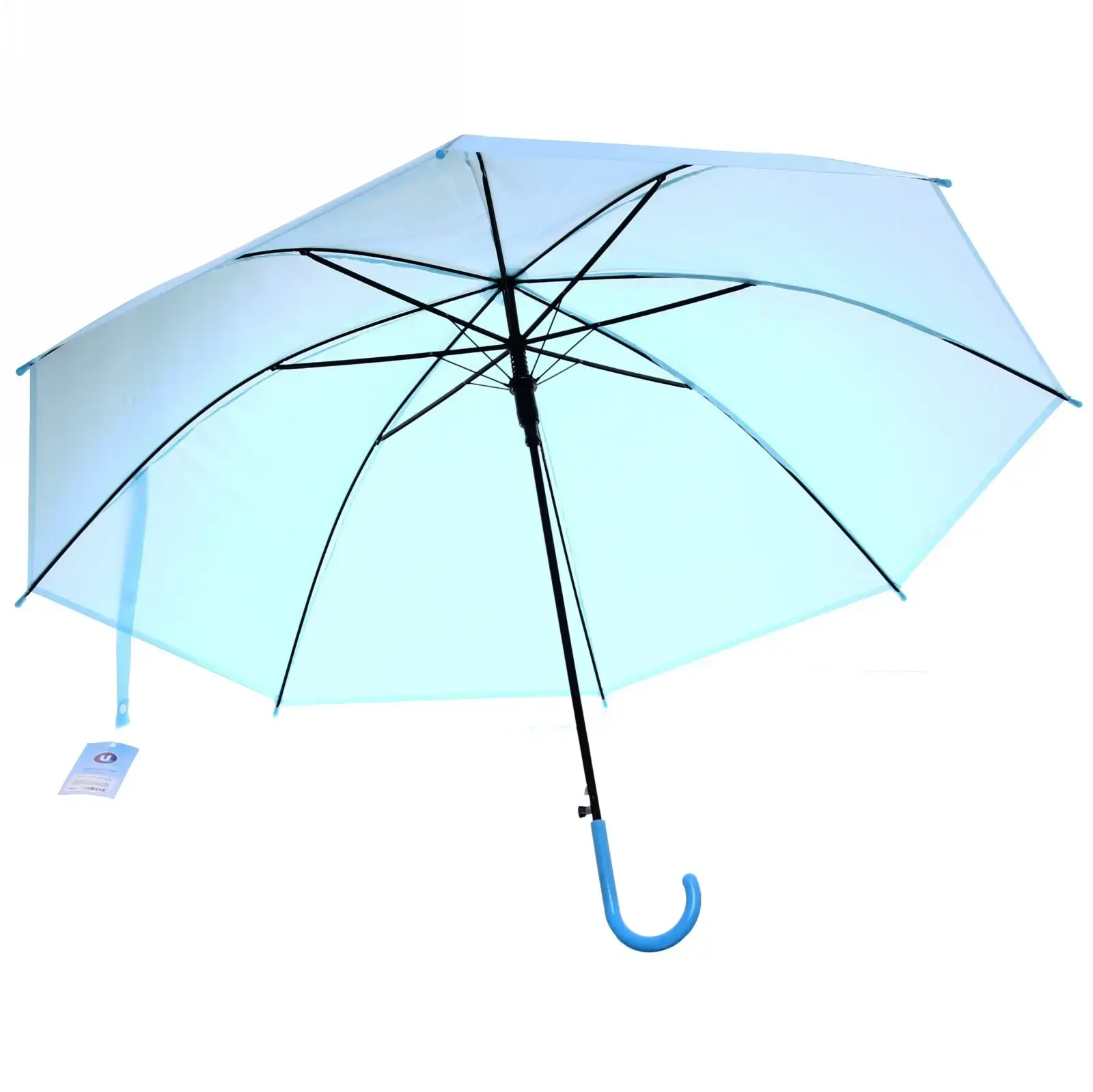 Этот зонт станет вашим незаменимым аксессуаром в непогоду. Его полупрозрачный голубой купол не только защищает от осадков, но и добавляет элегантности вашему образу.
