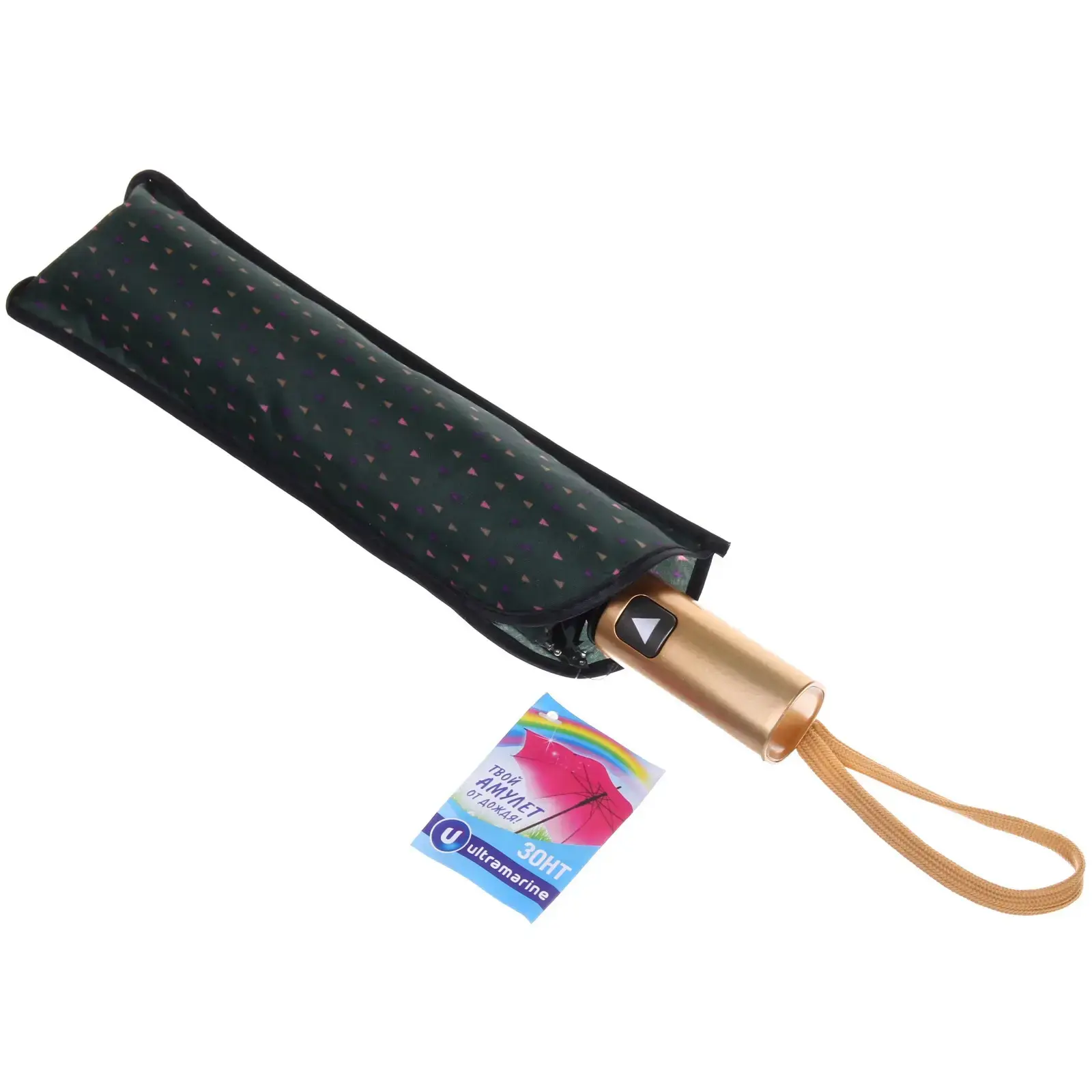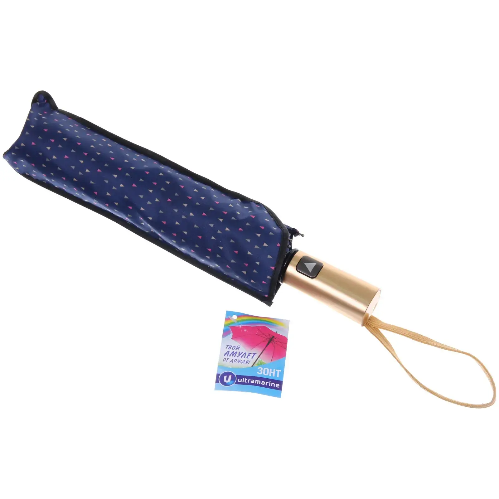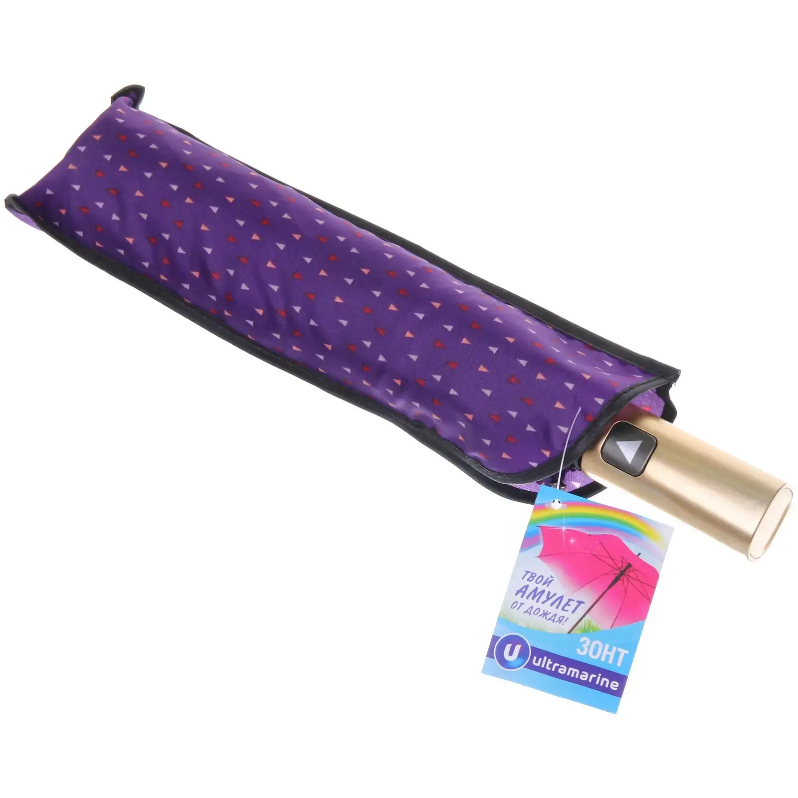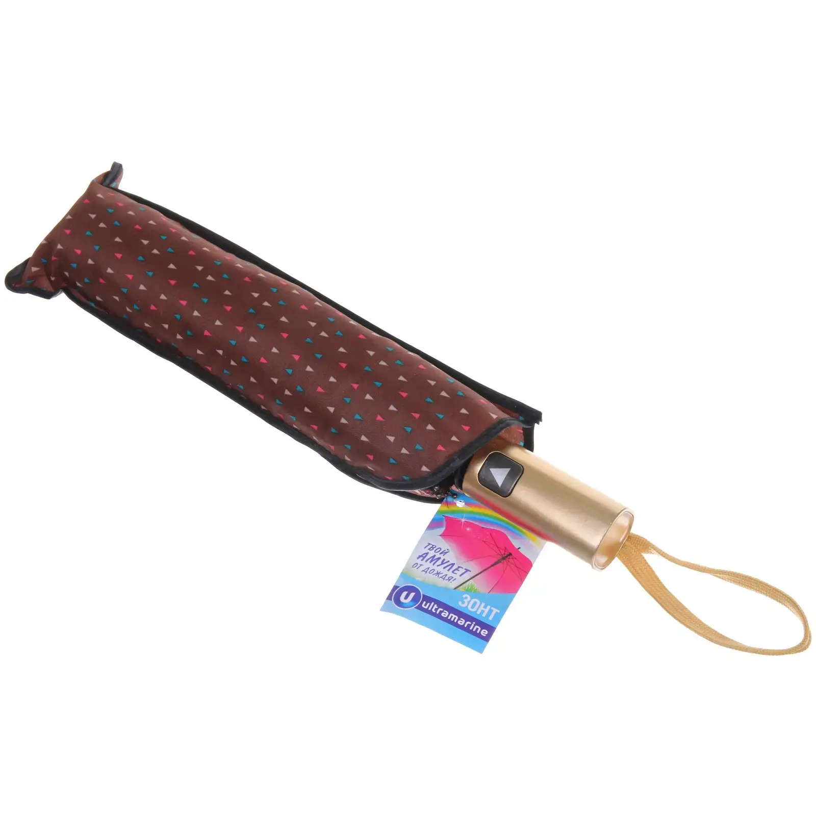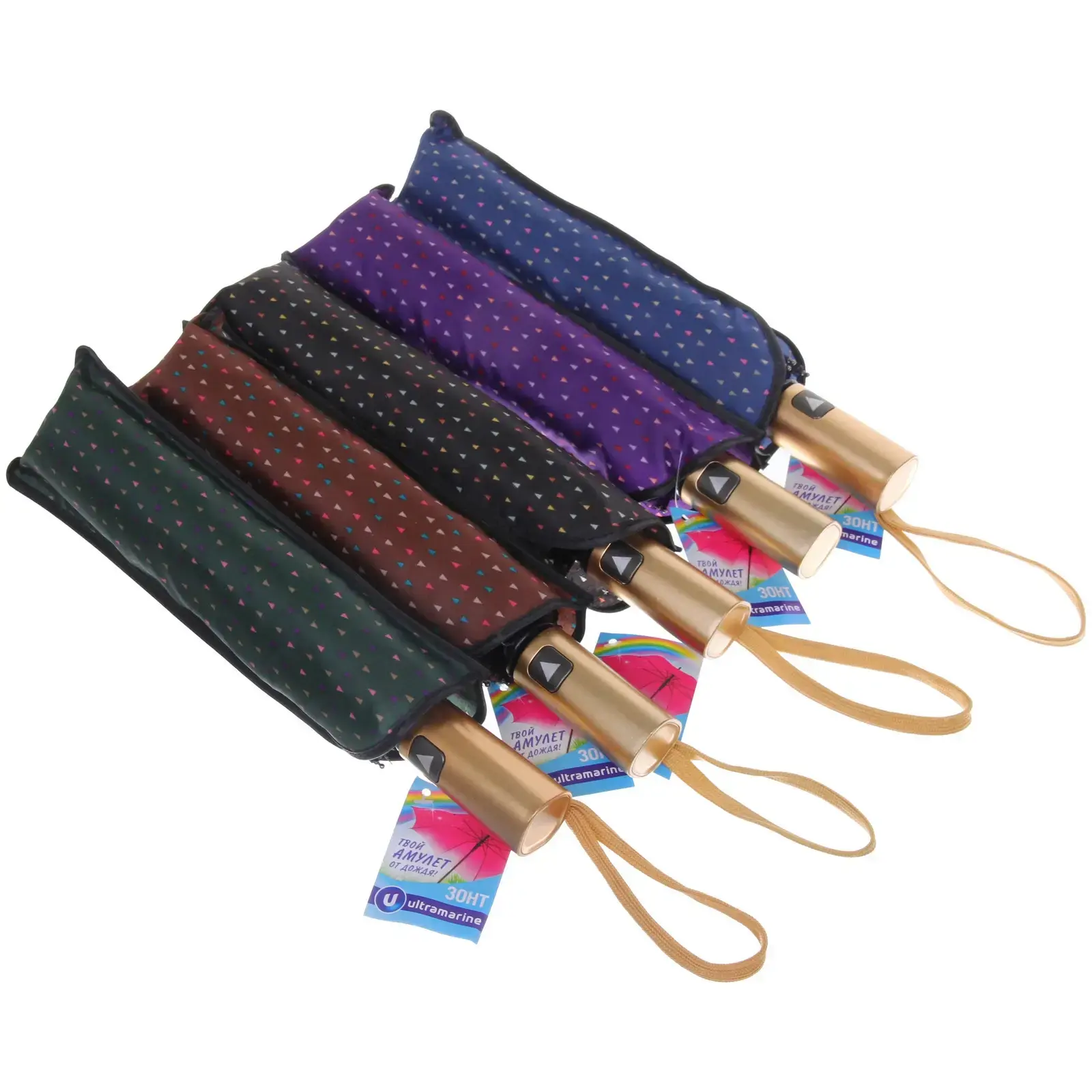 Цвет зонта определяется случайным образом из доступного ассортимента: синий, коричневый, фиолетовый, зеленый и другие варианты. Тканевый чехол с узором в комплекте.