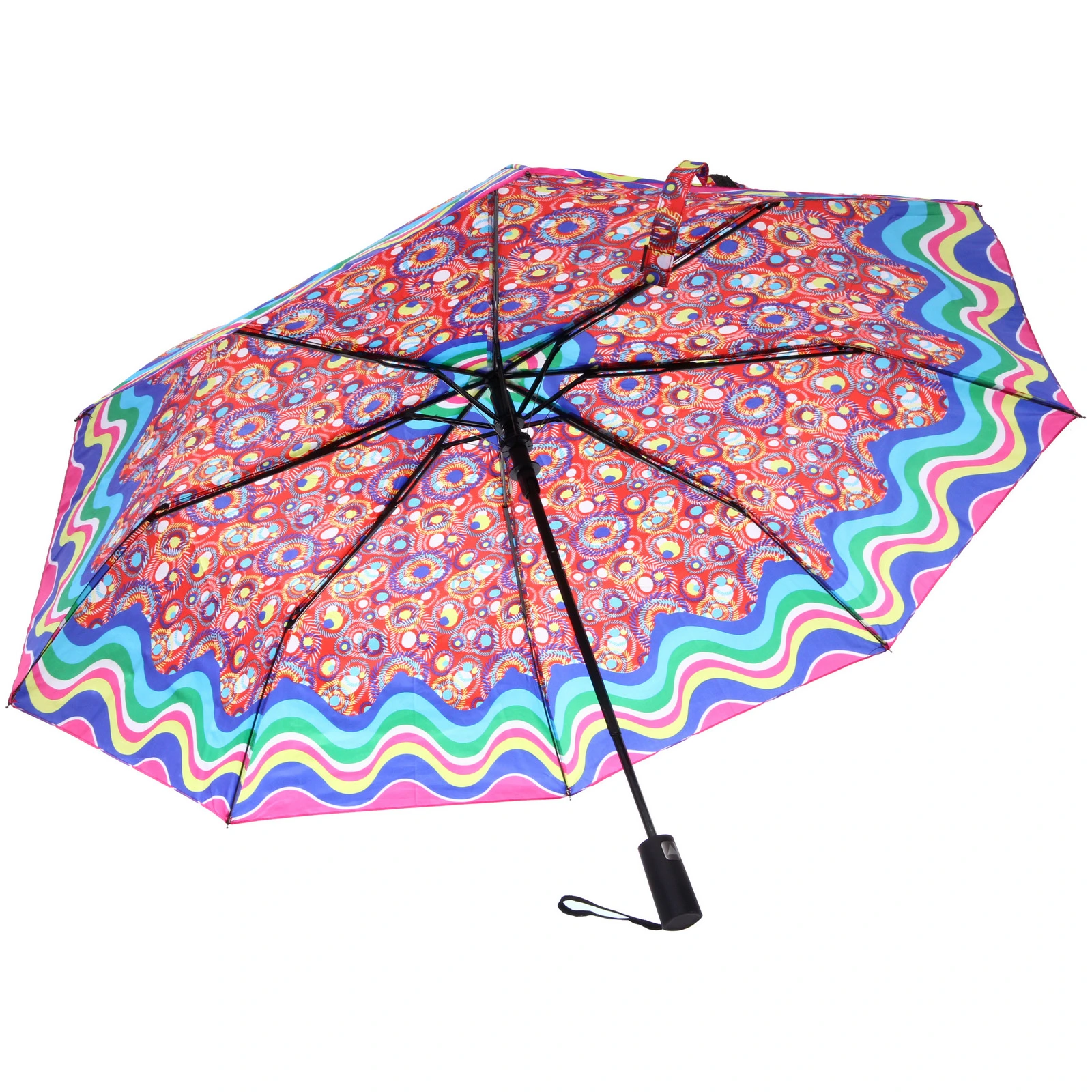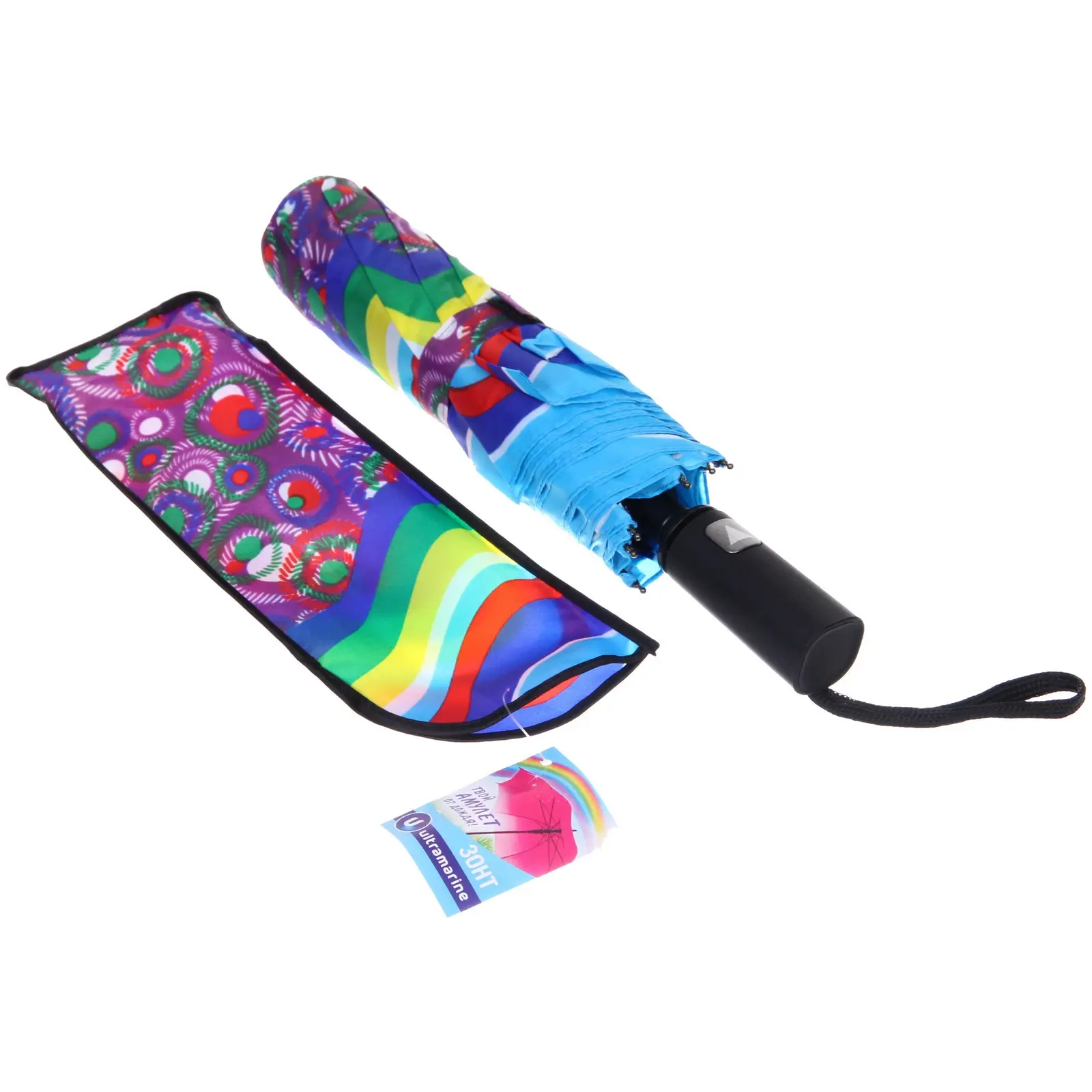 Товар представлен в ассортименте из 6 цветов. Разноцветный принт. Зонт поставляется в комплекте с чехлом для хранения и транспортировки.