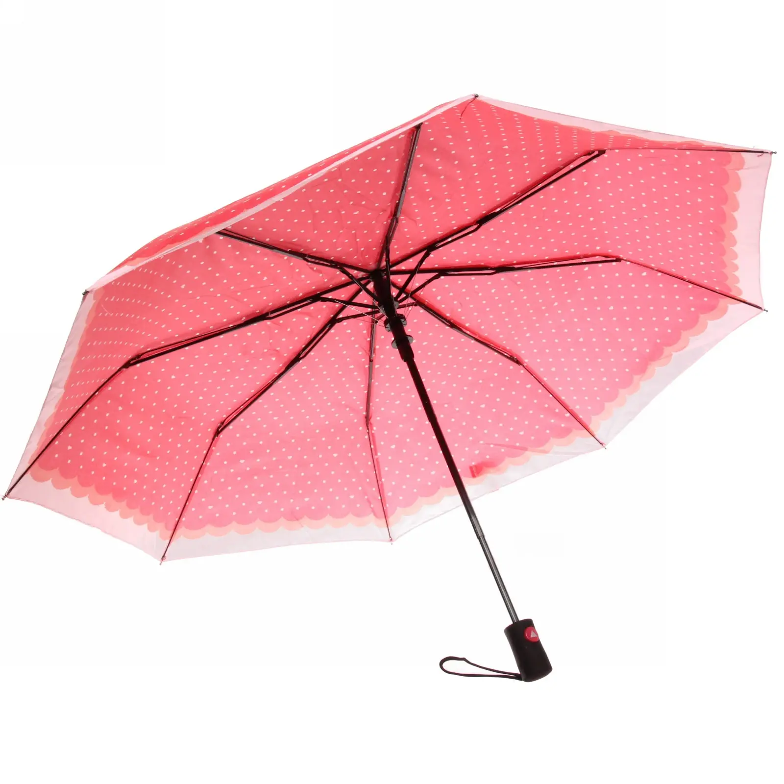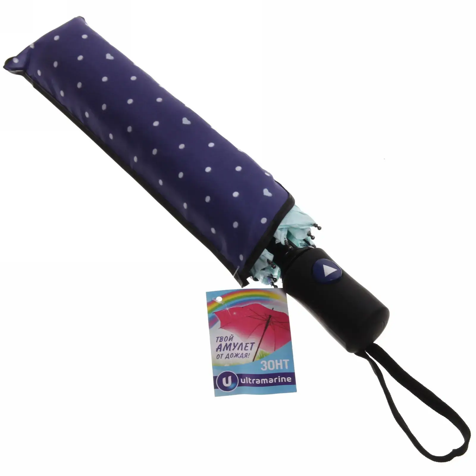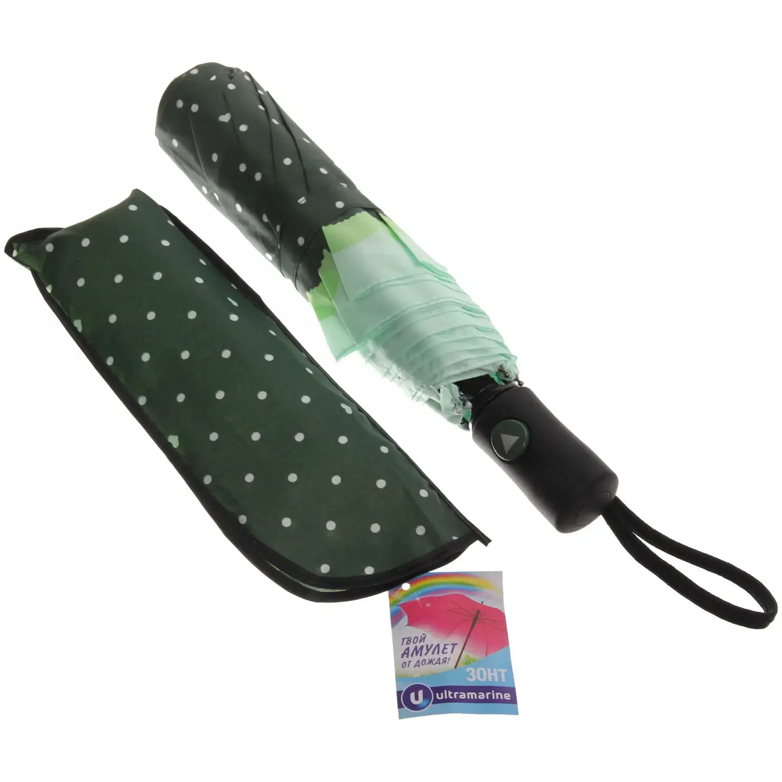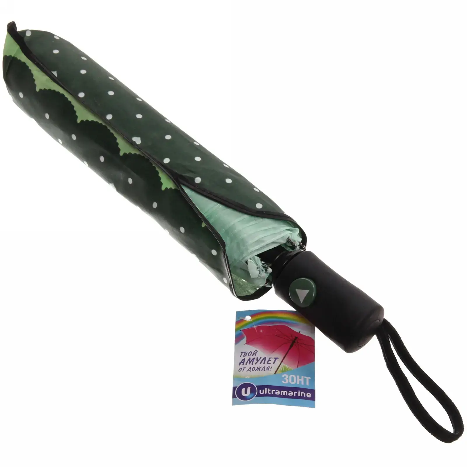 Особая конструкция ручки с прорезиненными вставками предотвращает выскальзывание из рук. Петля для запястья позволяет освободить руки при необходимости. Двойная строчка по периметру купола и армированные соединения спиц продлевают срок службы аксессуара.