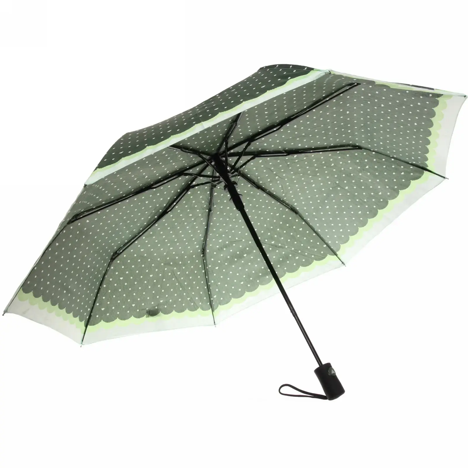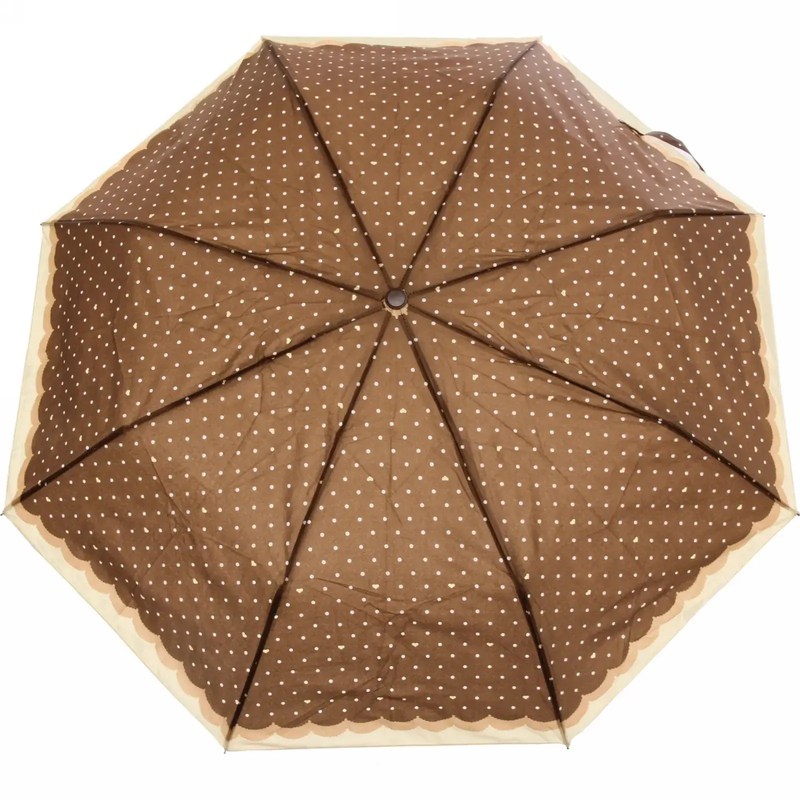 Каркас из сочетания металла и пластика обеспечивает лёгкость (всего 450 г) и прочность. Водоотталкивающий нейлон с UPF-покрытием защищает от капель дождя и УФ-лучей. Декоративные элементы: волнистый край купола и цветочный принт — подчеркнут вашу индивидуальность.