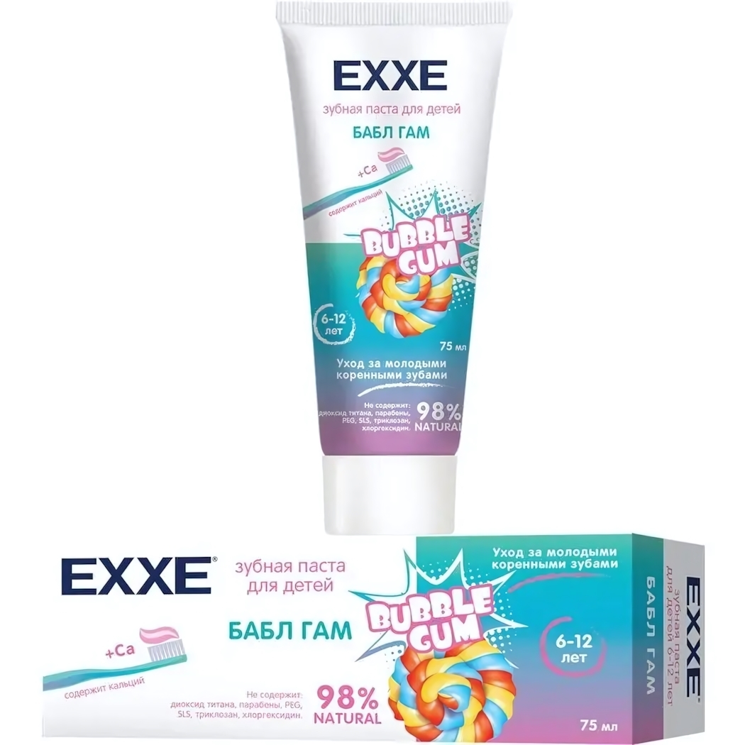 Зубная паста детская «Бабл гам» с кальцием, 75мл, для детей от 6 лет, безопасный состав