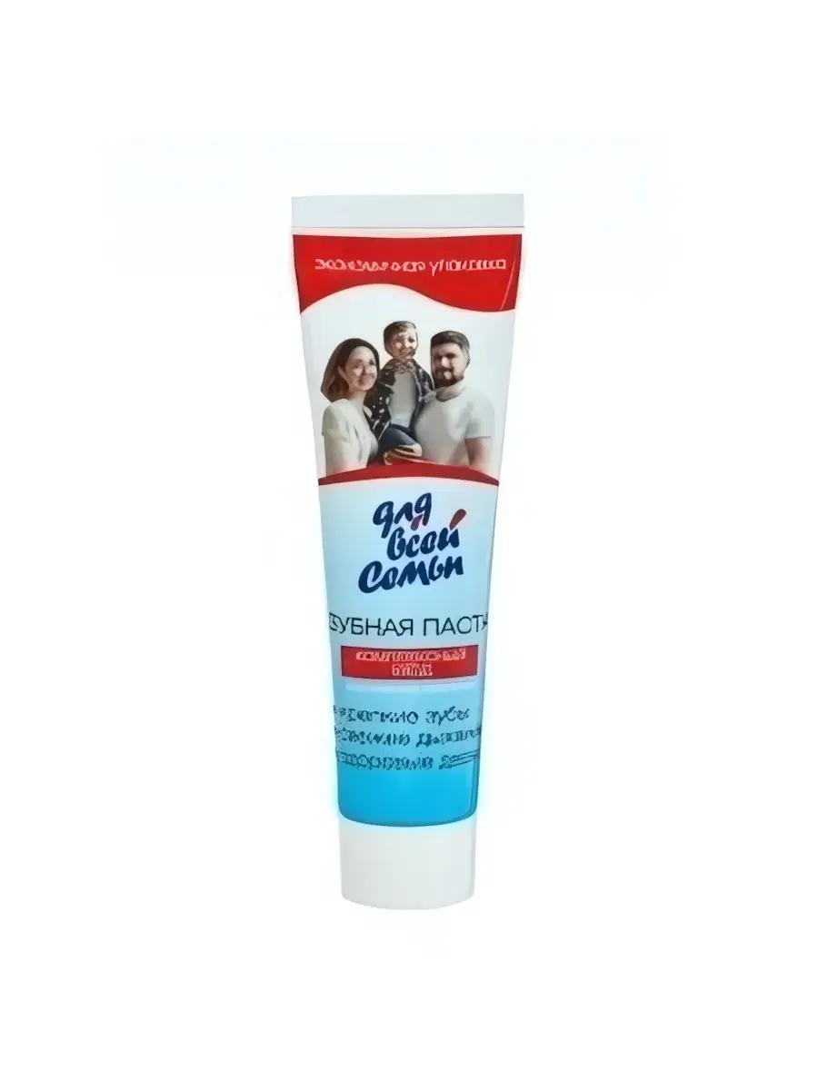 Зубная паста 'Для всей семьи' предназначена для всех возрастов. Она подходит как для взрослых, так и для детей, что делает её идеальным выбором для семейного использования. Паста легко наносится на зубную щетку и обеспечивает качественное очищение зубов, оставляя приятное ощущение свежести.