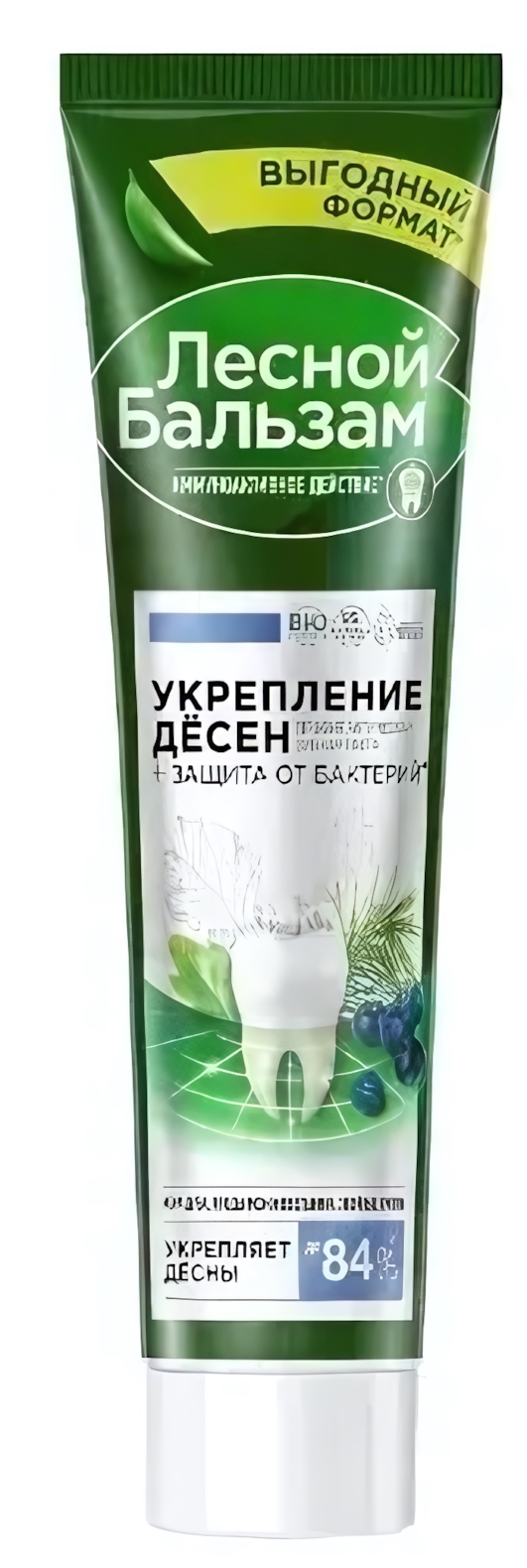 Зубная паста «Лесной Бальзам» сочетает силу природных компонентов и клинически доказанную эффективность. Формула с экстрактом можжевеловых ягод и коры дуба бережно укрепляет десны, создавая защитный барьер от бактерий.
