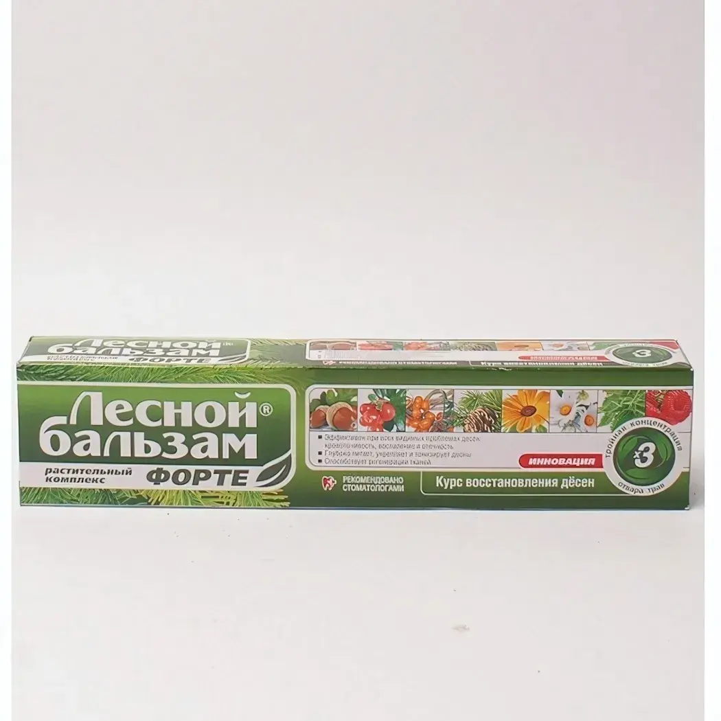 Откройте для себя зубную пасту 'Лесной бальзам ФОРТЕ', которая обеспечивает эффективное восстановление десен благодаря уникальному растительному комплексу. Эта паста не только заботится о здоровье ваших зубов, но и дарит ощущение свежести на весь день. Рекомендована стоматологами, она станет вашим надежным помощником в уходе за полостью рта.