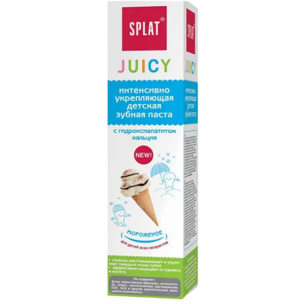 Подарите своим детям здоровье и улыбку с зубной пастой СПЛАТ Juicy Мороженое! Эта паста не только эффективно очищает зубы, но и укрепляет эмаль благодаря уникальному составу с гидроксиапатитом. Ваши дети будут в восторге от вкусного мороженого, которое делает процесс чистки зубов увлекательным и приятным.