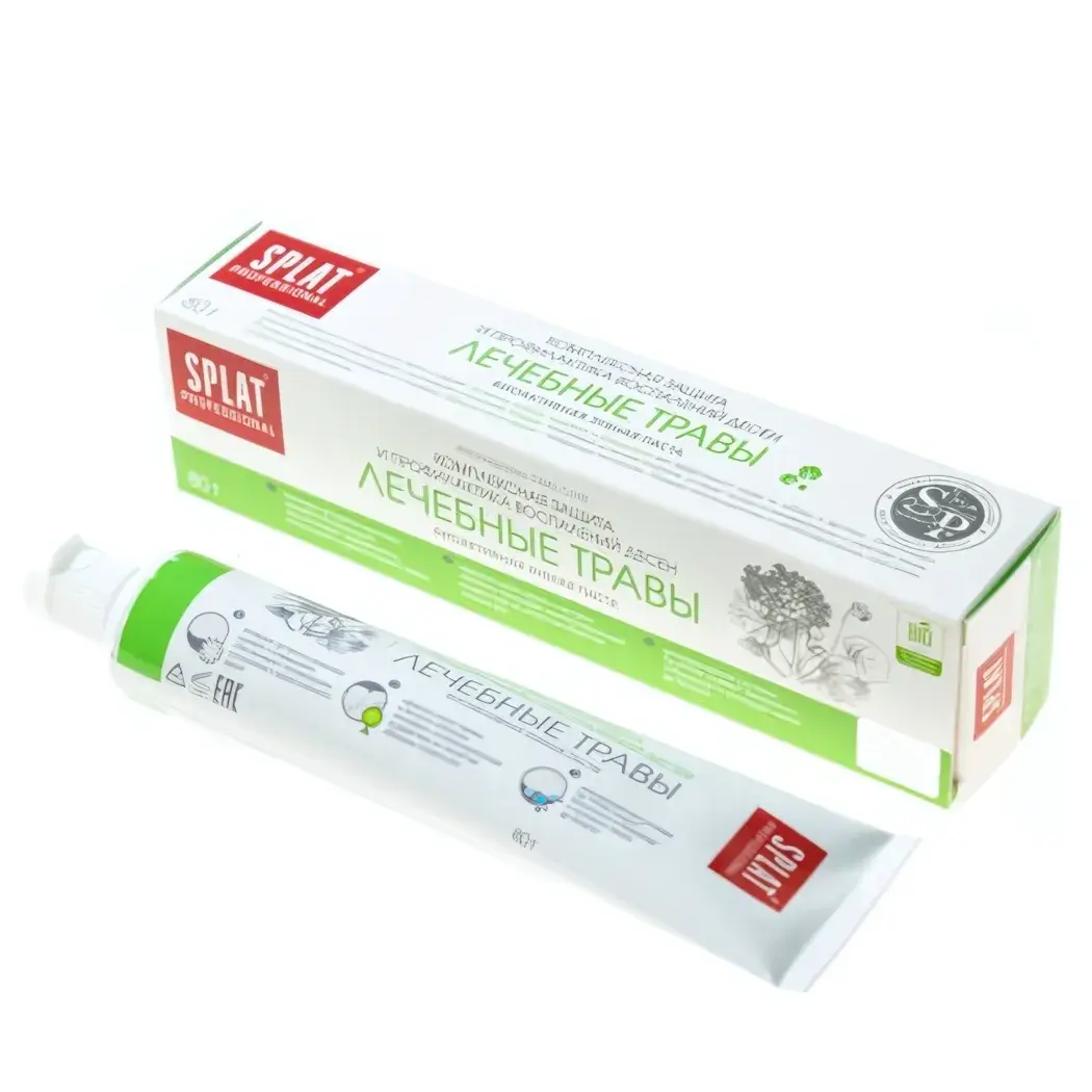 Объем тюбика составляет 80 граммов, что делает его удобным для хранения и использования. Паста упакована в стильный тюбик с круглой крышкой, который легко открывается одной рукой. Упаковка выполнена в белых и зеленых цветах, что подчеркивает натуральность и экологичность продукта. Не забывайте, что зубная паста SPLAT Professional не тестировалась на животных, что делает ее отличным выбором для веганов.