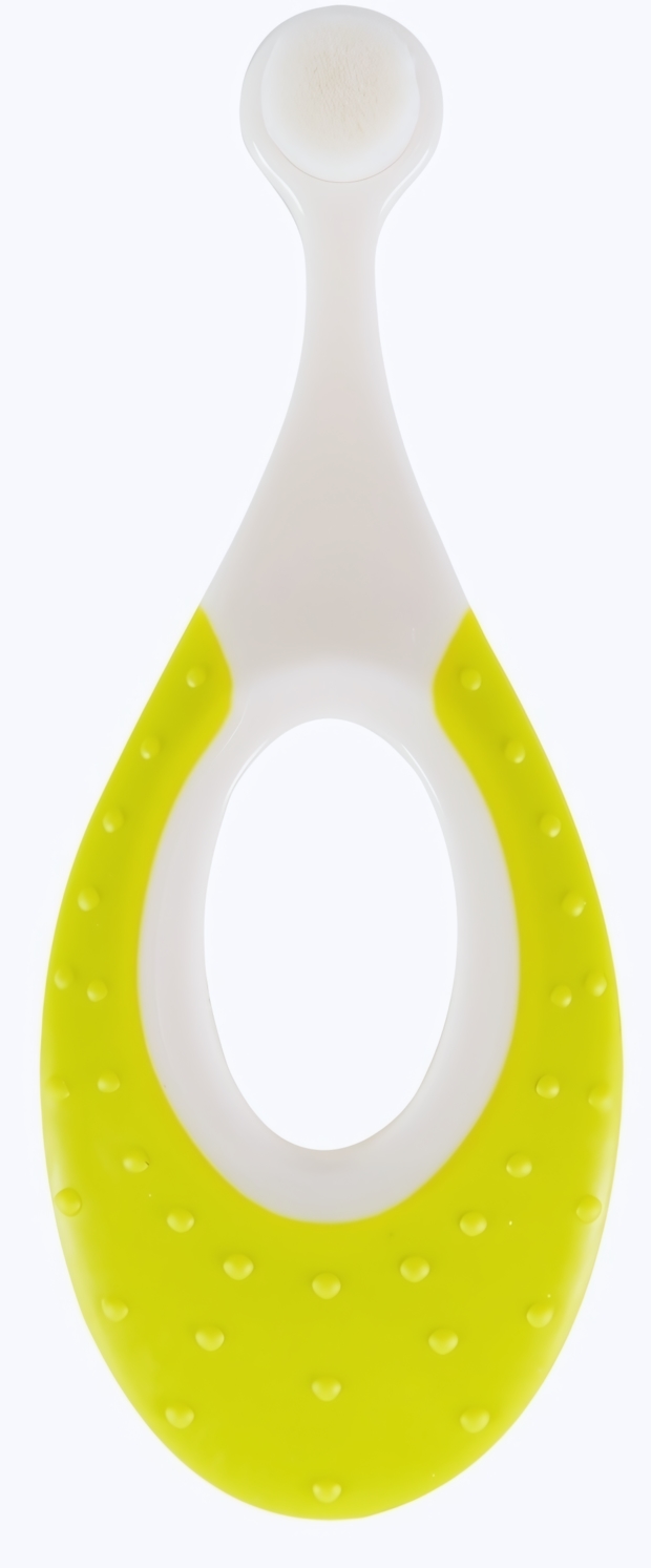 Эта зубная щетка предназначена специально для малышей и обеспечивает бережное удаление налета благодаря мягкой щетине и специальной форме. Особенность модели — массажер для десен с обратной стороны, который помогает облегчить прорезывание зубов и способствует укреплению десен.