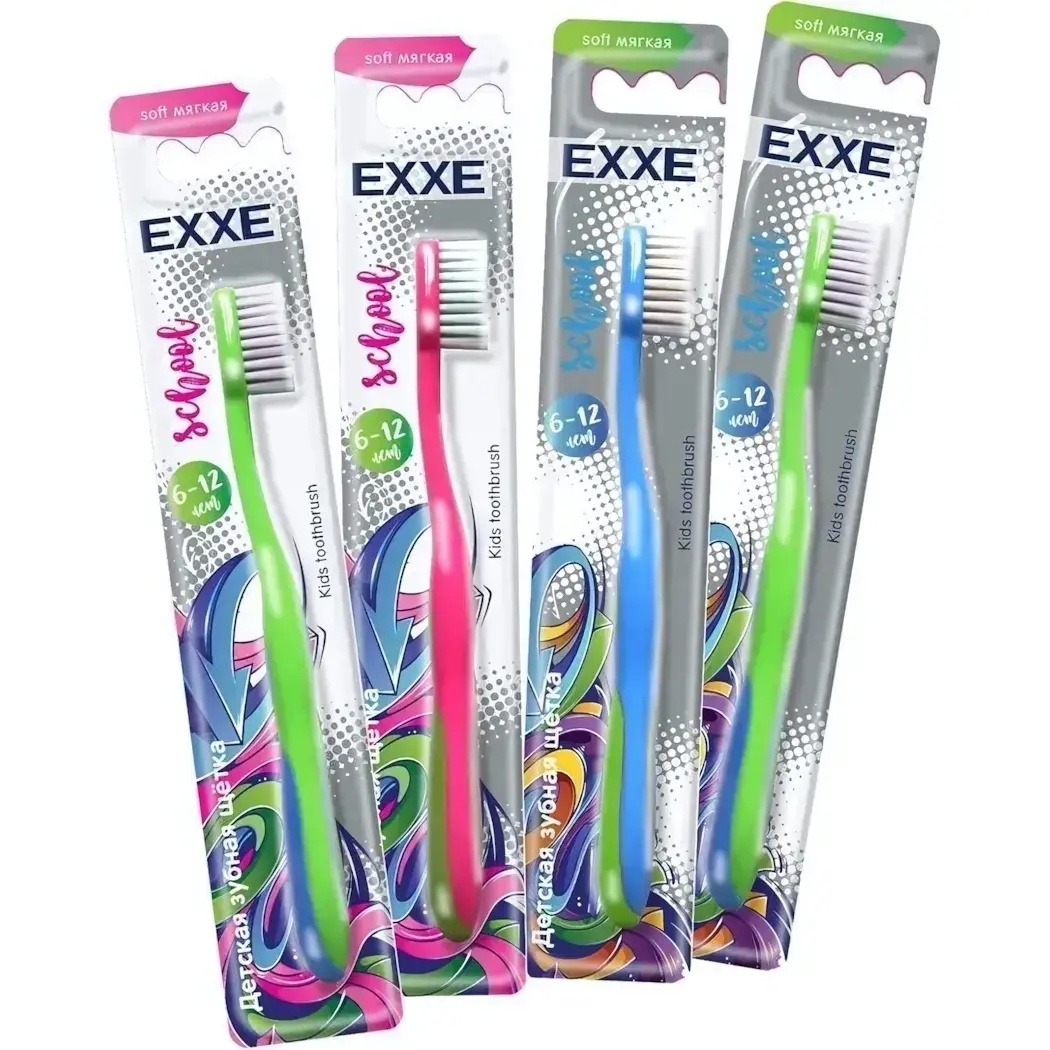 Зубная щётка детская EXXE school 6-12 лет, мягкая щетина, эргономичная ручка, цвет в ассортименте