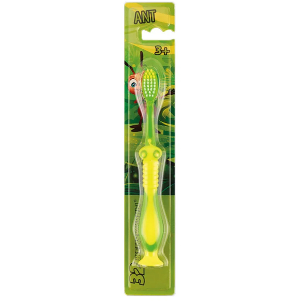 Представляем вам зубную щетку для детей МОДУМ 32, которая станет надежным помощником в уходе за зубами вашего ребенка. Ярко-желтый цвет с зеленым акцентом и привлекательный дизайн с изображением насекомого делают процесс чистки зубов увлекательным и интересным для детей. Эта щетка подходит для детей от 3 лет, что подтверждает возрастная рекомендация на упаковке.