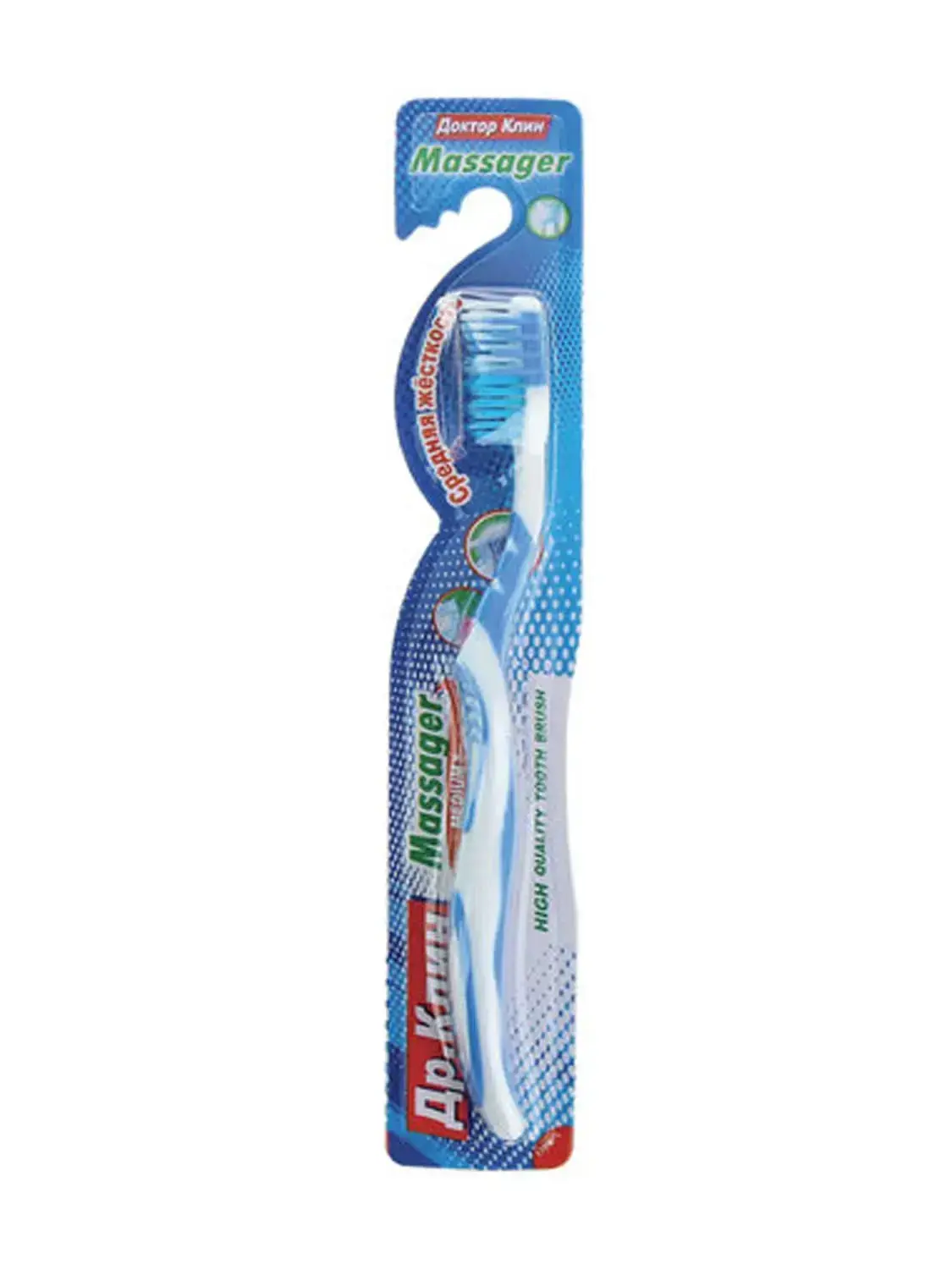 Зубная щетка DR.CLEAN L38, средняя жесткость, массажный эффект, белая/голубая