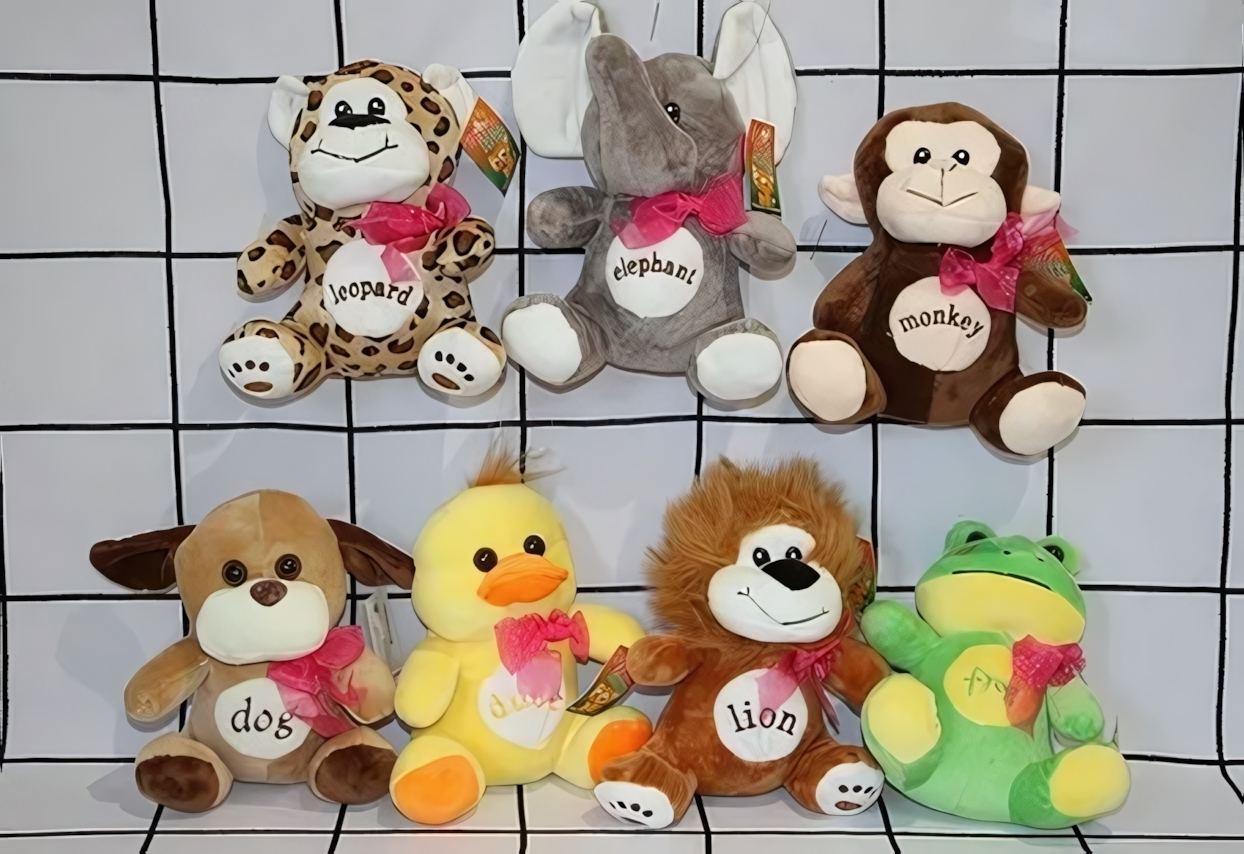 Каждая игрушка выполнена в виде животного — от лягушки и утки до льва и слона — и украшена розовым бантом. Цвет игрушки в ассортименте, отгружается один товар, выбранный случайным образом. Это делает каждую покупку сюрпризом, ведь вы не знаете, какое именно животное окажется вашим новым другом.