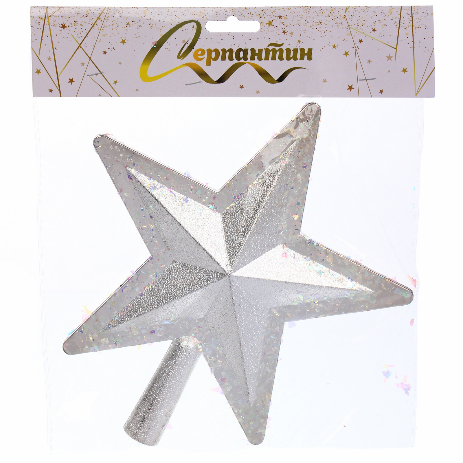 Звезда поставляется в прозрачной подарочной упаковке с элементами дизайна от бренда Серпантин. Голографические блестки создают дополнительный эффект мерцания, делая украшение ещё более праздничным.