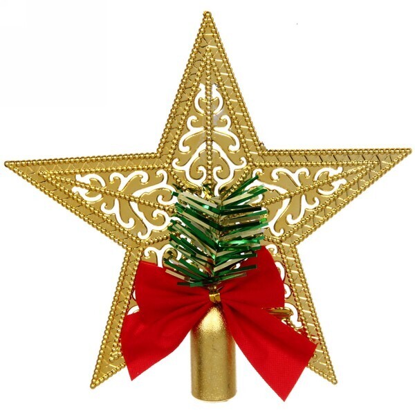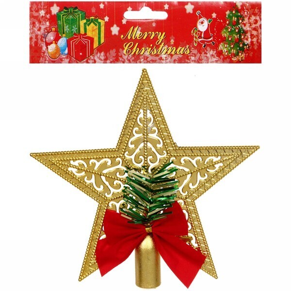 Звезда легко устанавливается на верхушку ёлки благодаря специальному цилиндру, который обеспечивает надежное крепление. Красный бантик и зелёные веточки придают изделию праздничный вид, делая его идеальным для украшения как домашних ёлок, так и общественных мест. Подходит для всех, кто хочет добавить яркие детали в свой новогодний декор.