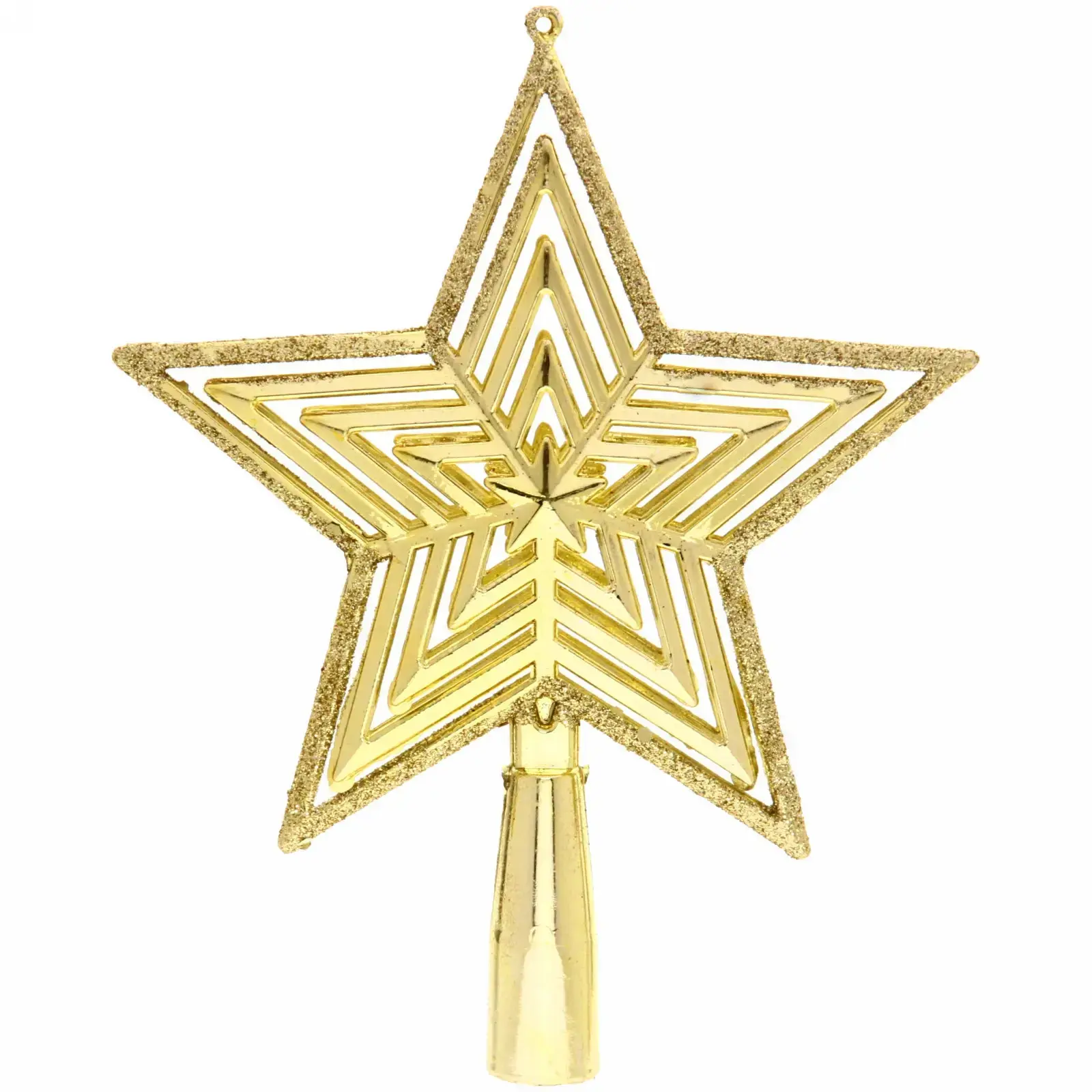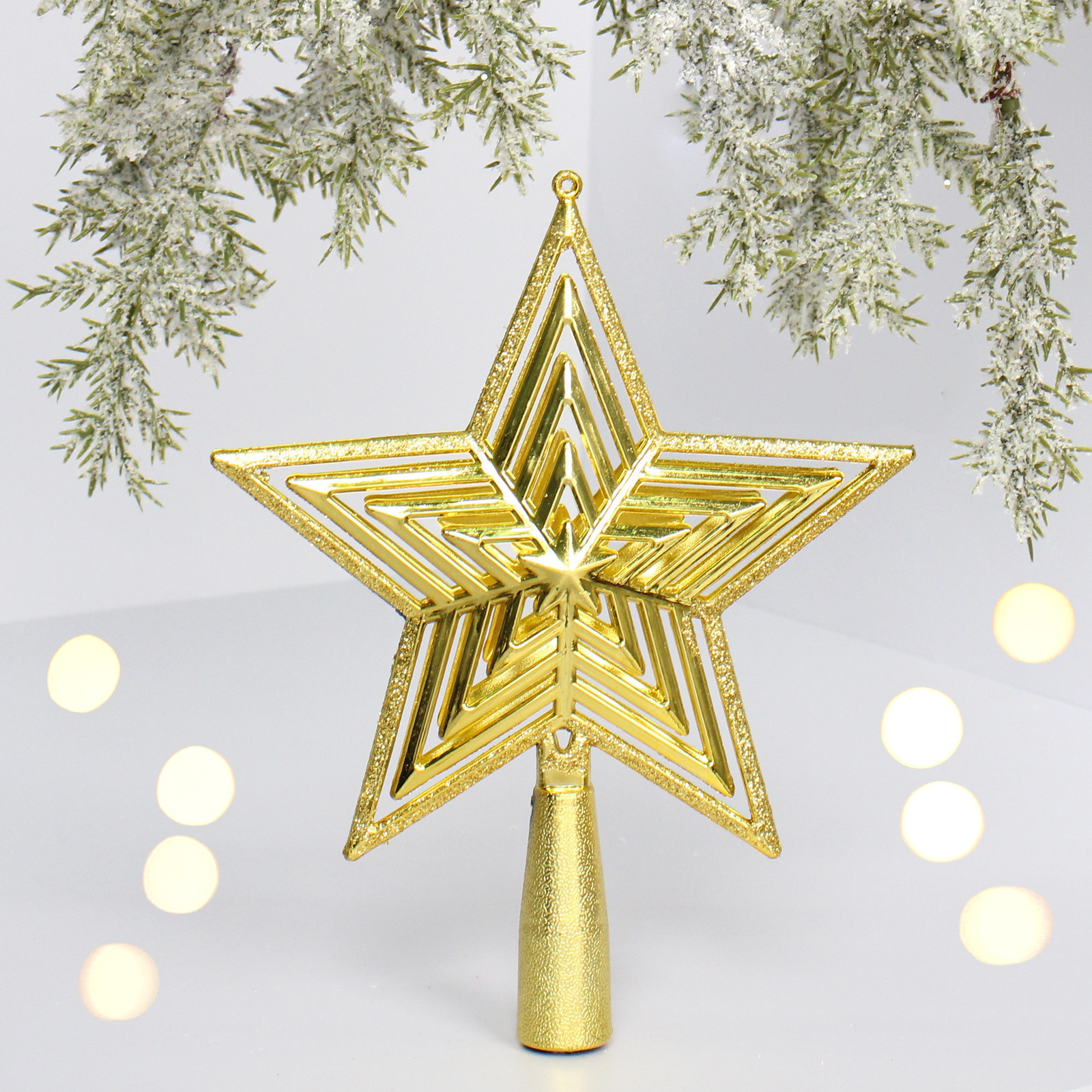 Добавьте волшебства в ваш Новый год с этой великолепной звездой на ёлку высотой 15 см. Золотистый цвет и классический блеск создают атмосферу праздника и уюта, а многослойный дизайн с геометрическими узорами придаёт изделию уникальность и стиль. Эта звезда станет не только украшением вашей ёлки, но и ярким акцентом в интерьере.