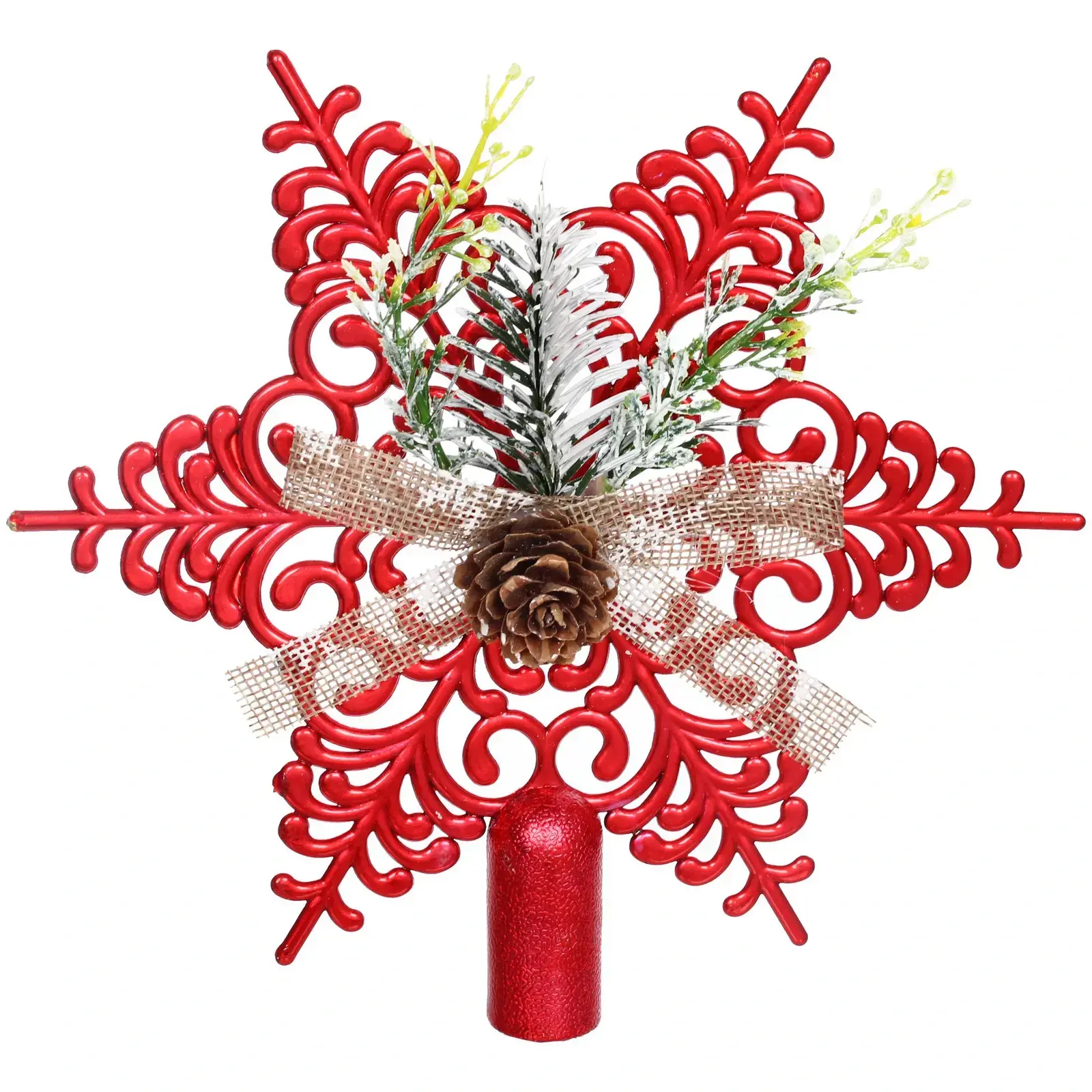 Звезда ёлочная "Хвойная" 19*19см, красная, пластиковая с декором