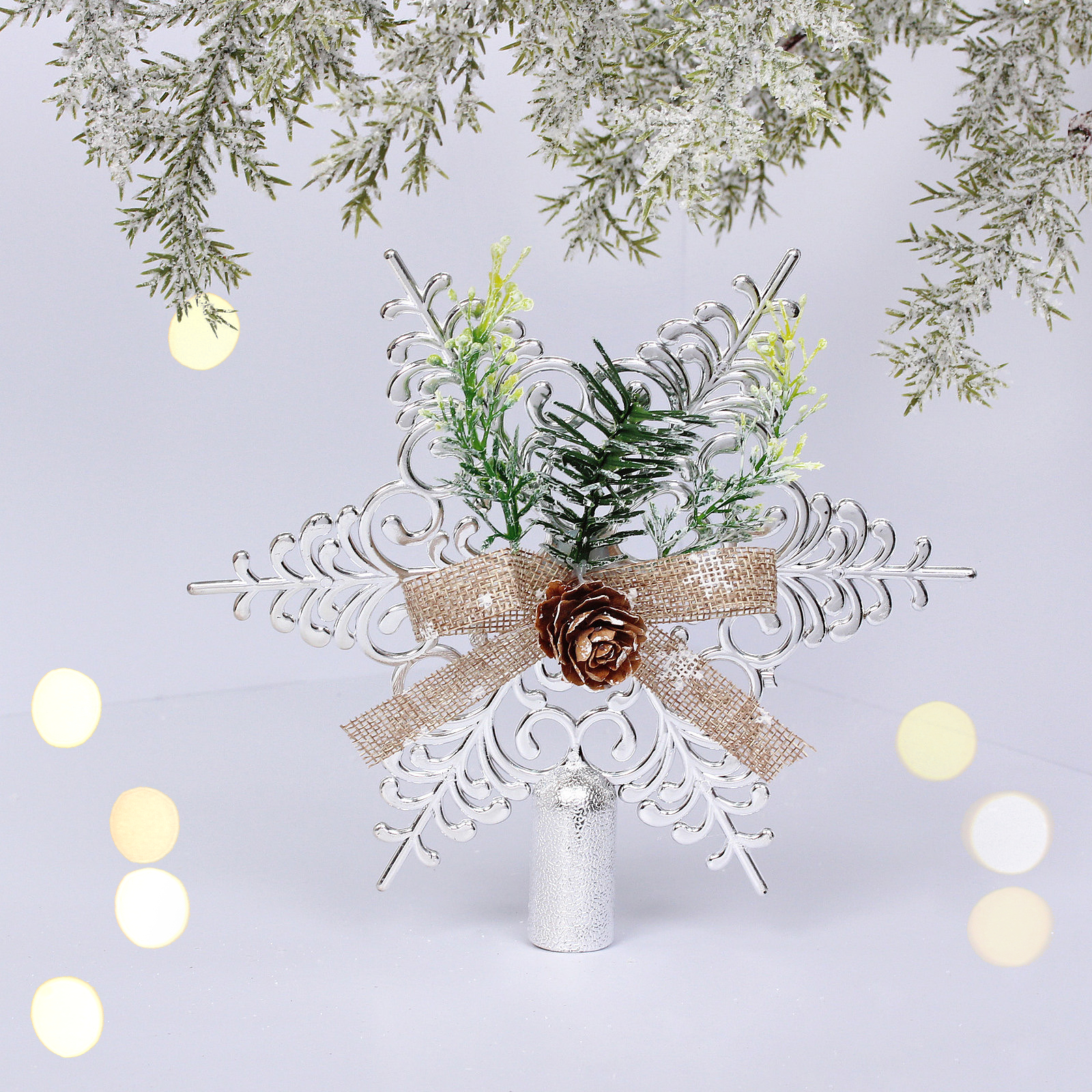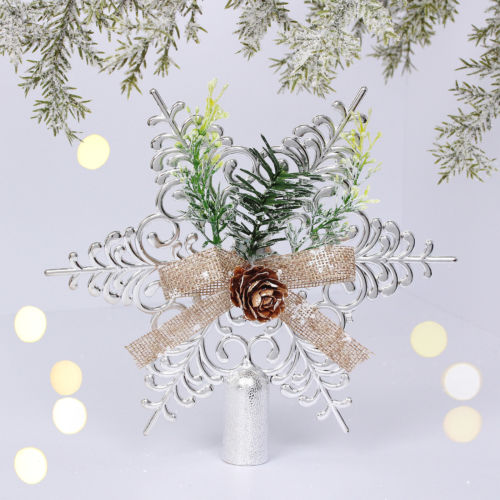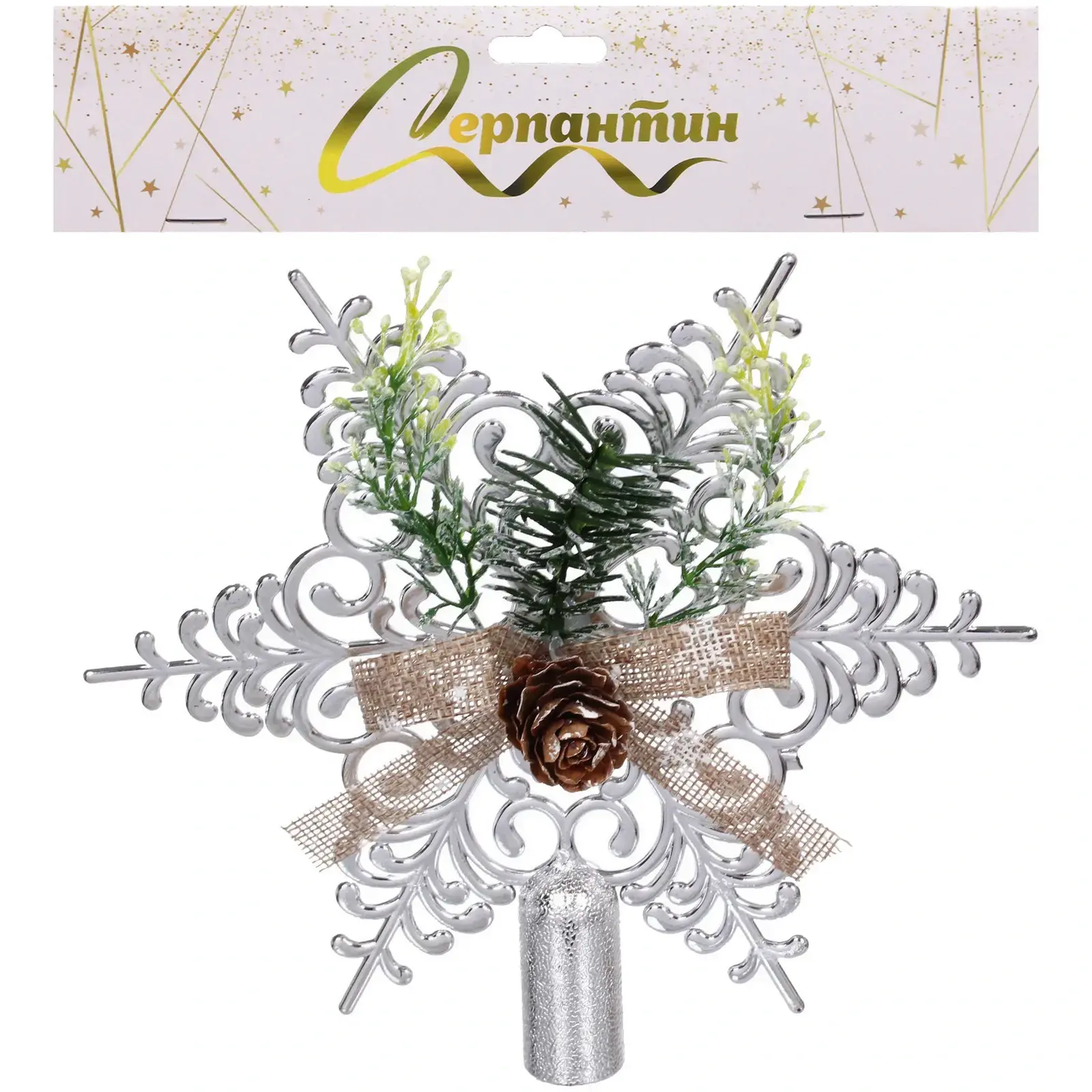 Звезда ёлочная «Хвойная» 19*19см, серебро, пластик, праздничный декор
