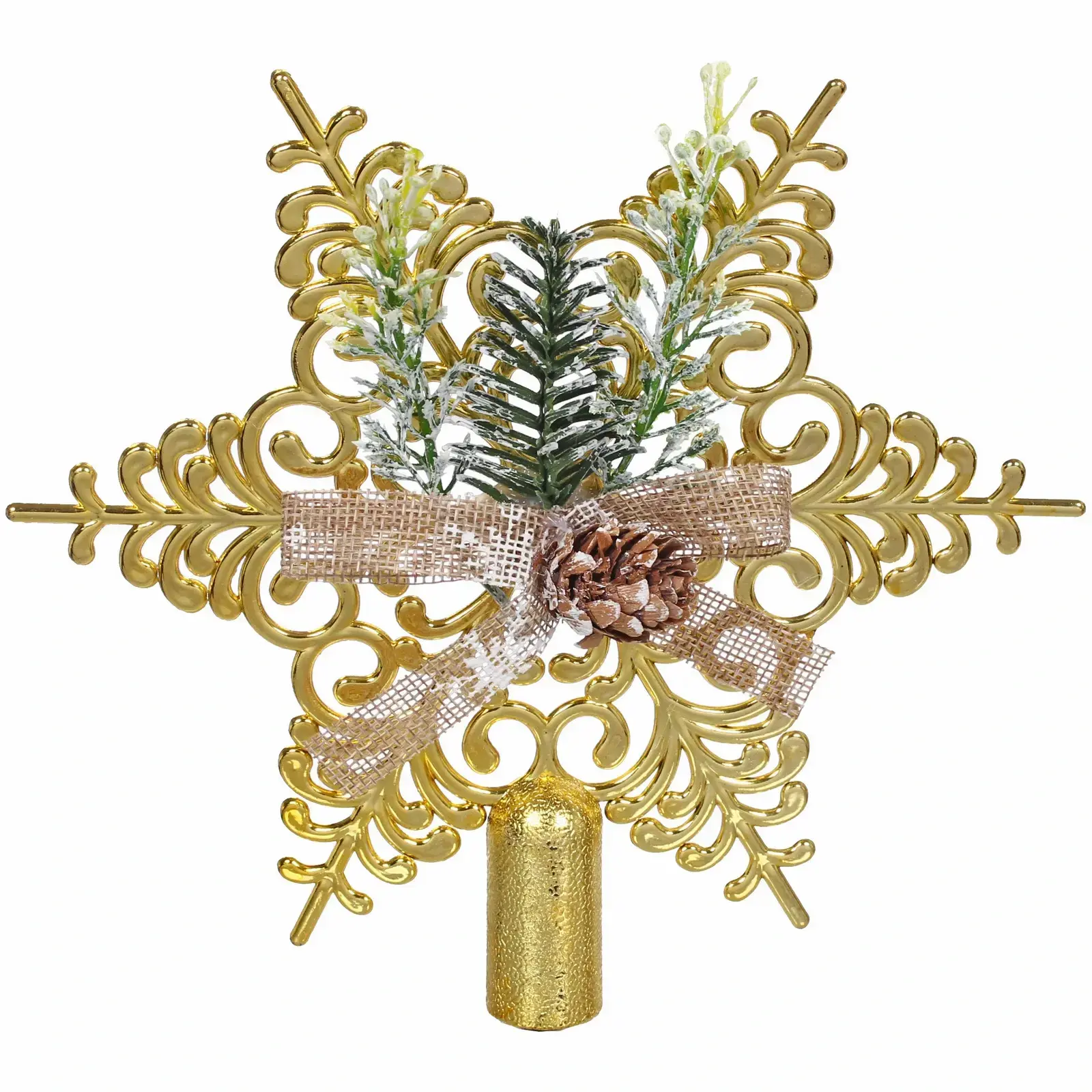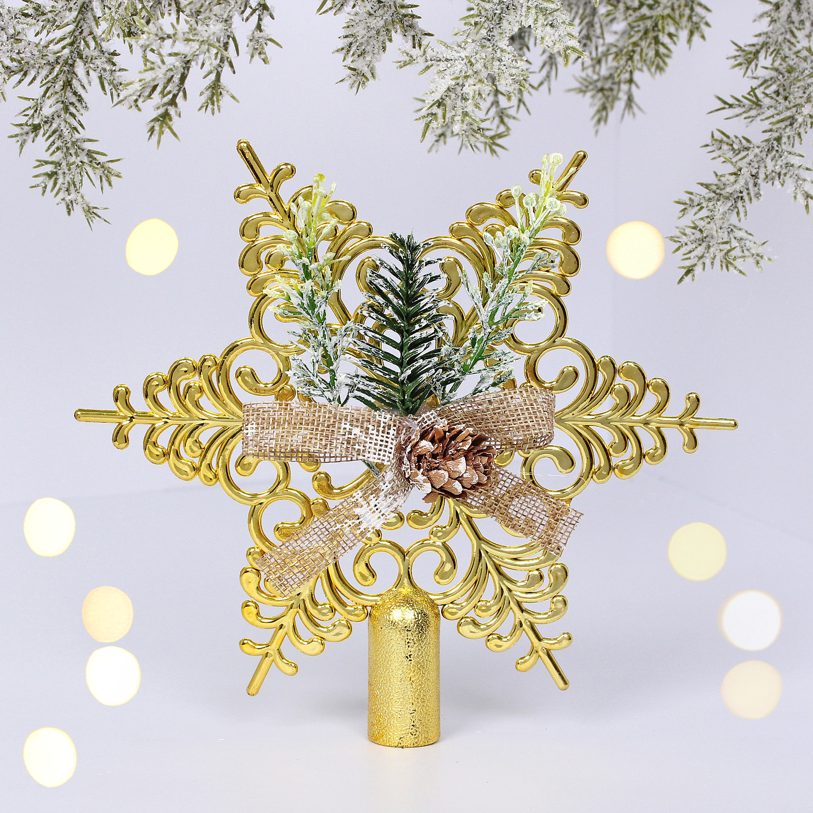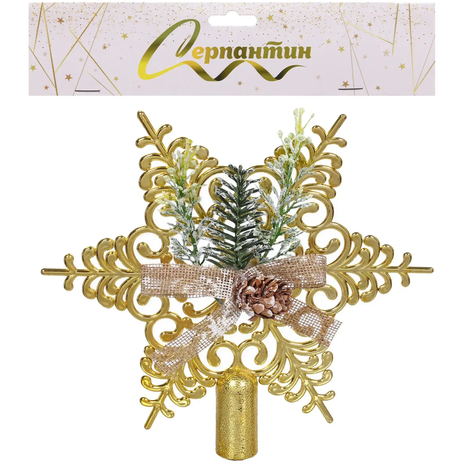 Звезда на ёлку "Хвойная" 19*19см, золото, пластик, с шишкой и бантом