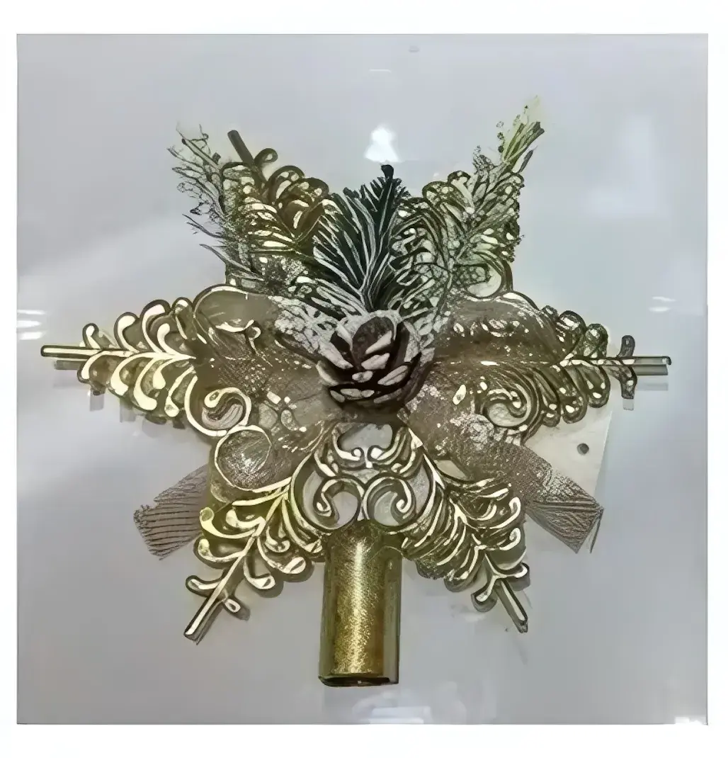 Роскошная золотая звезда станет завершающим штрихом в украшении вашей новогодней ёлки. Элегантный дизайн с элементами хвои и натуральной шишкой в центре создаст атмосферу настоящего зимнего волшебства.