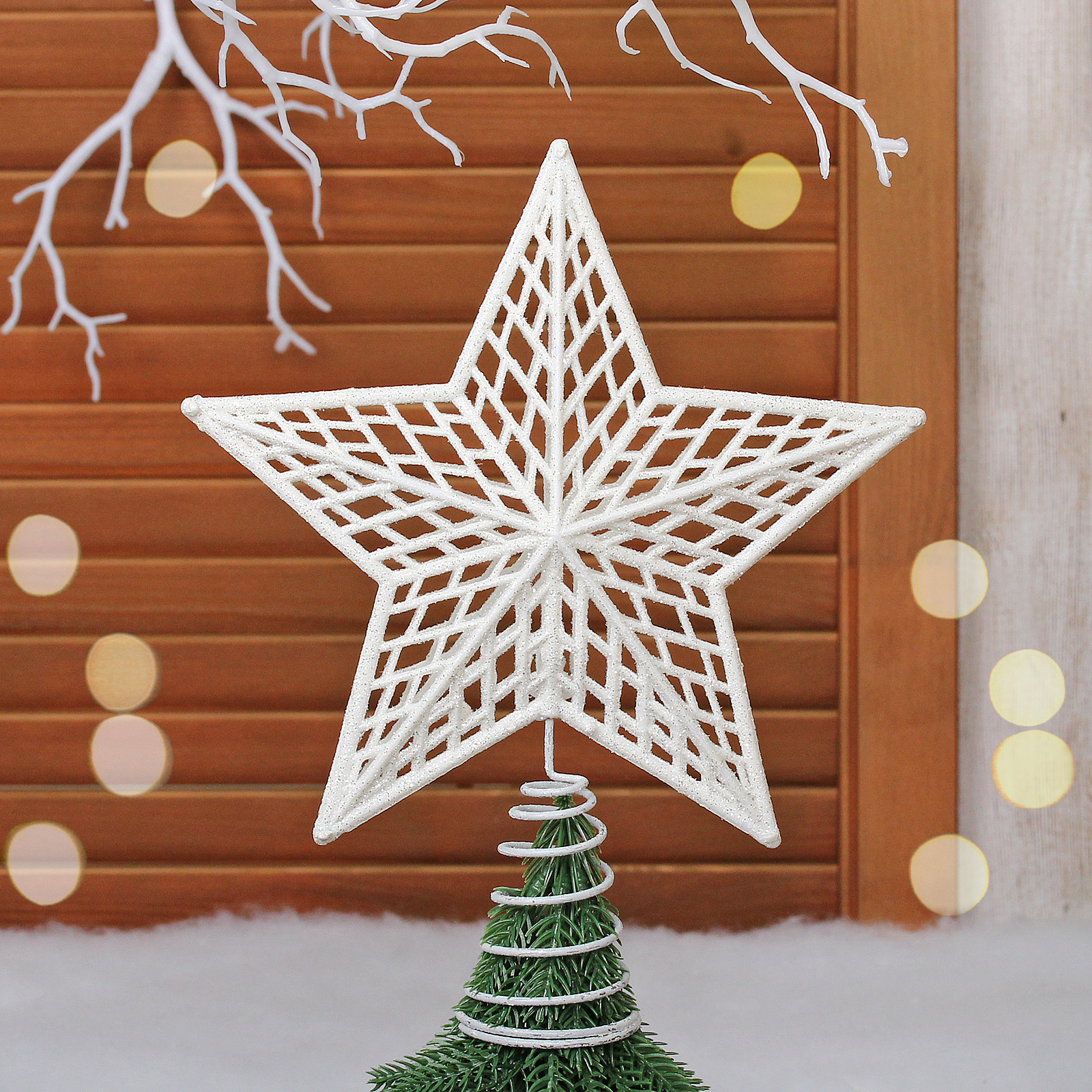 Звезда на ёлку "Паутина" 20*23см, серебристая, с ажурным узором