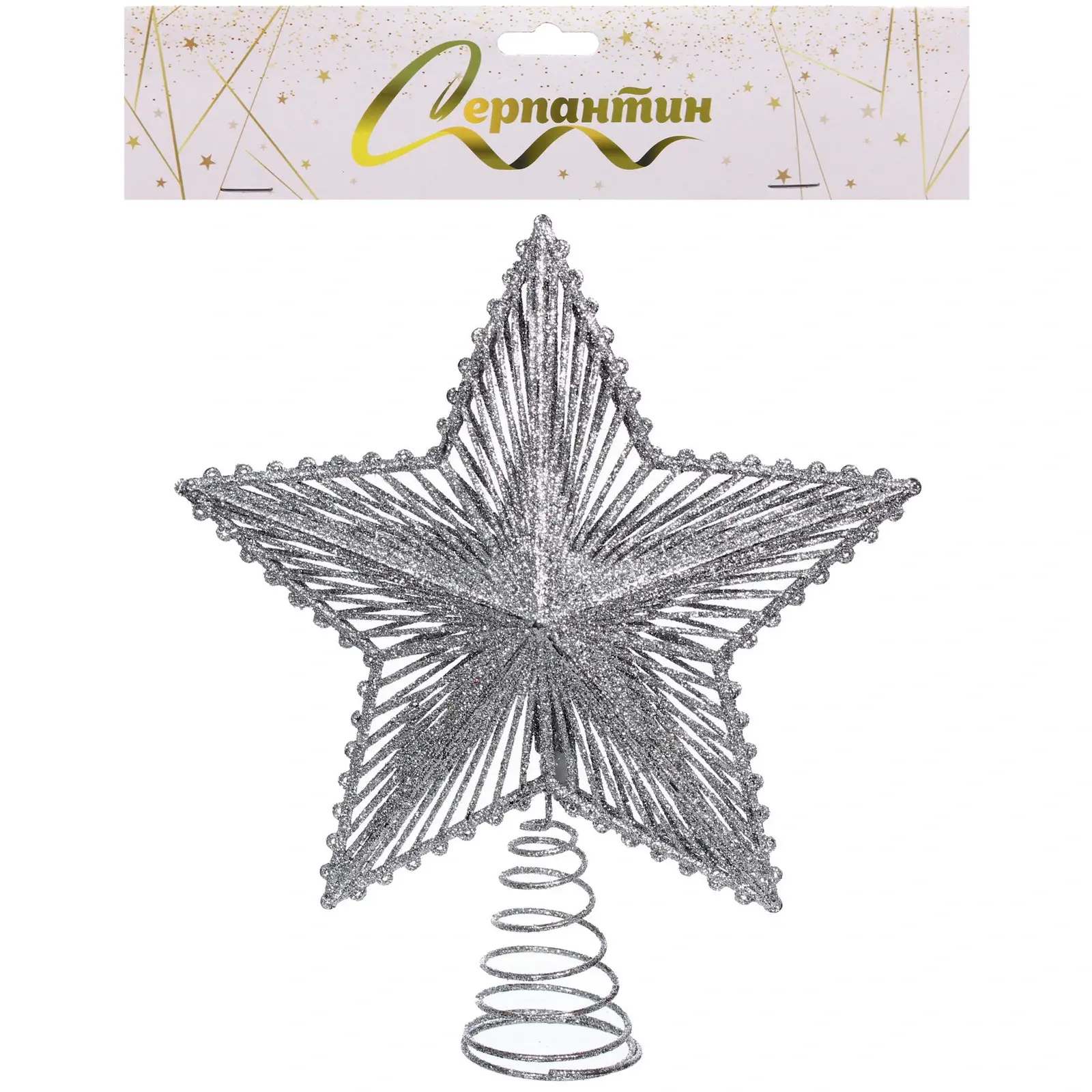 Звезда на ёлку «Волшебница», 20*23 см, серебристая с блёстками