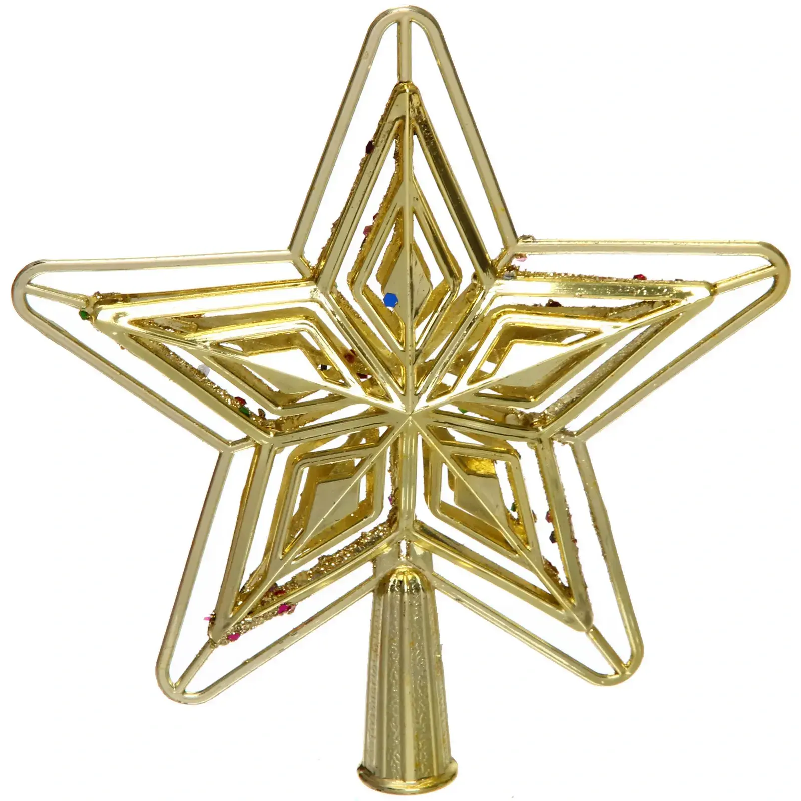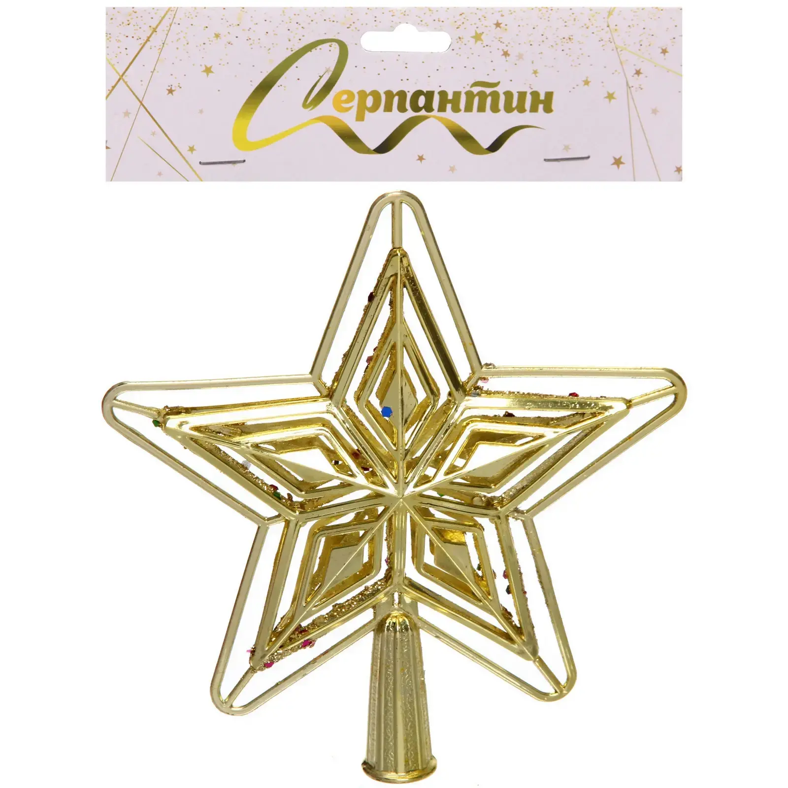 Звезда на ёлку "Ажурный вечер" 15см, золото, пластик, с декором