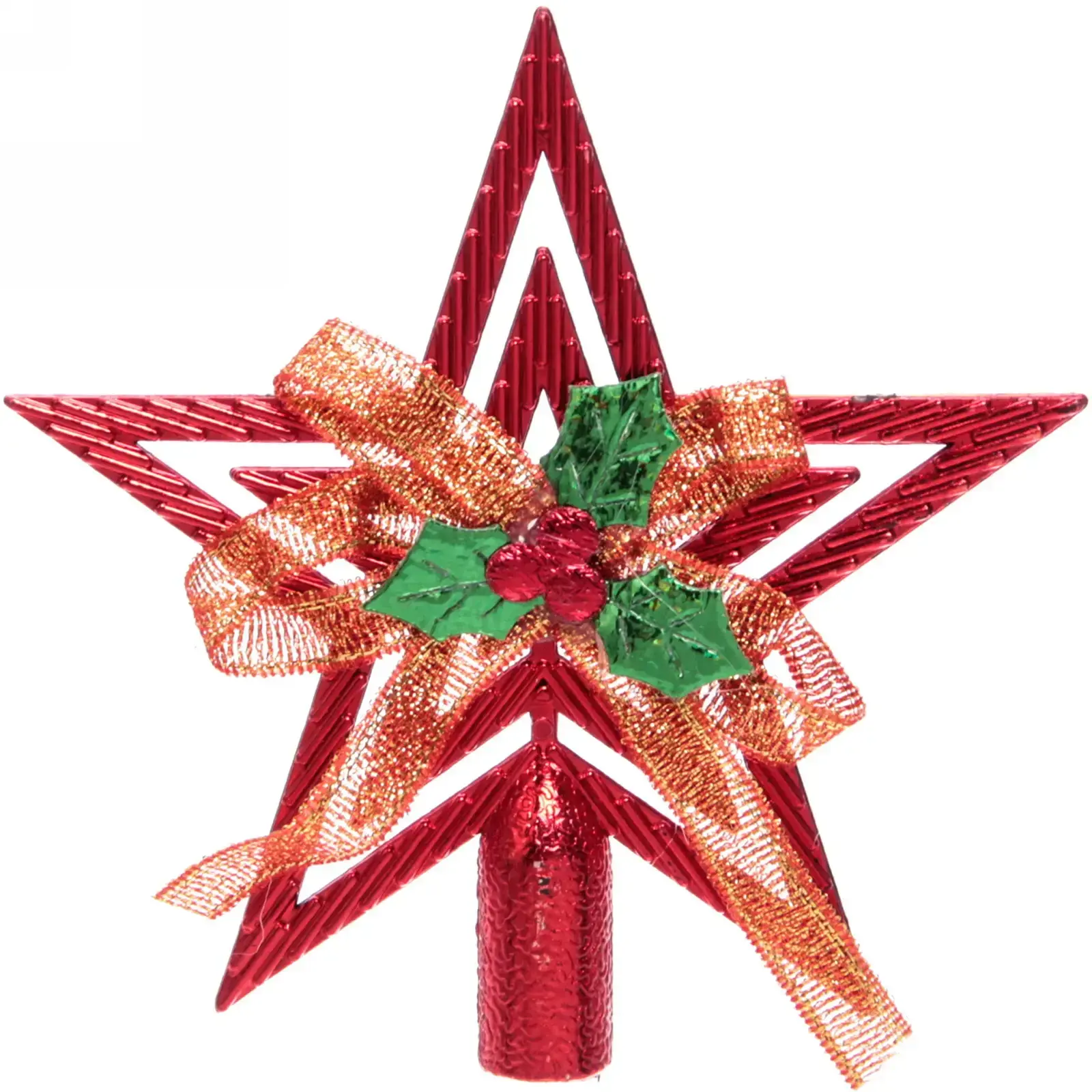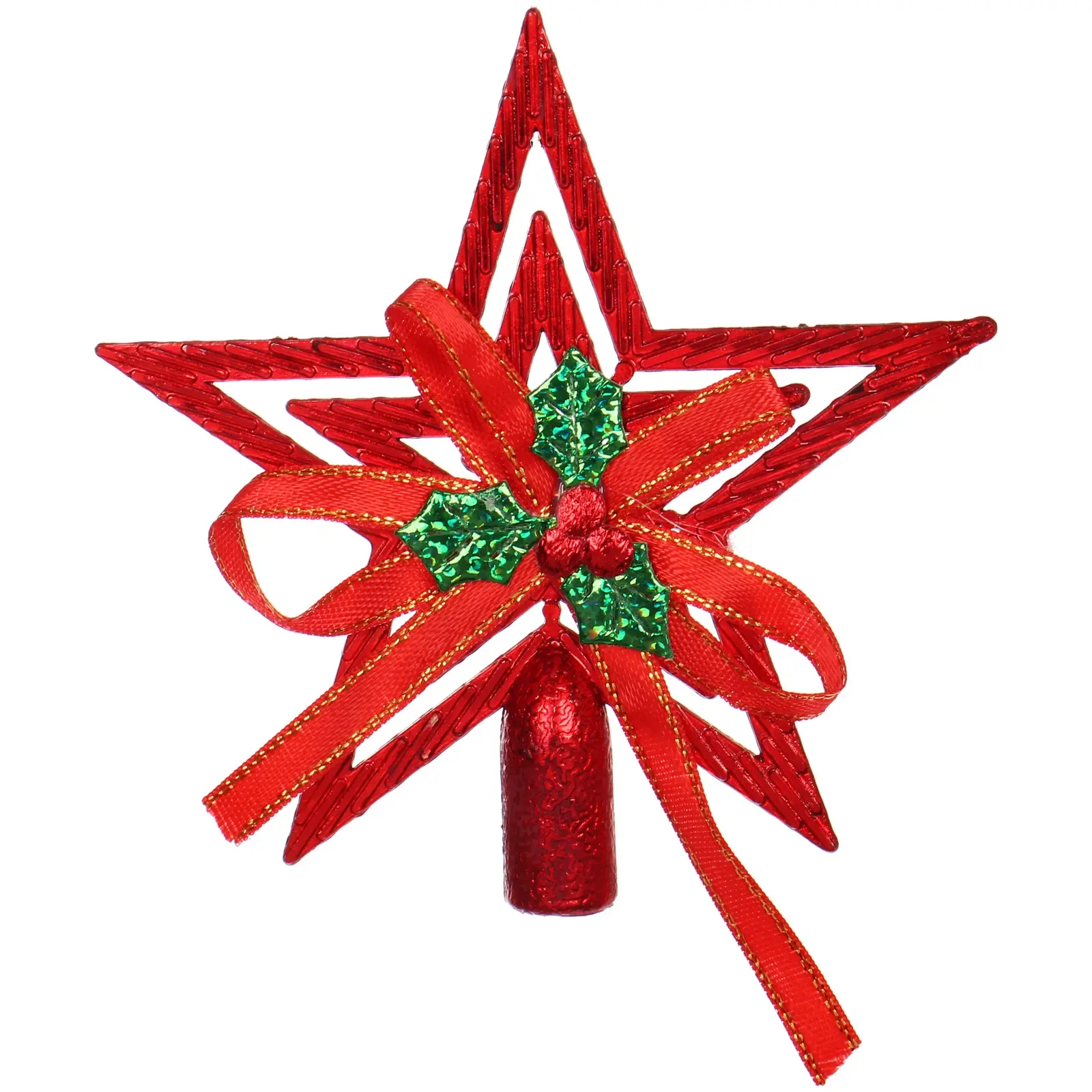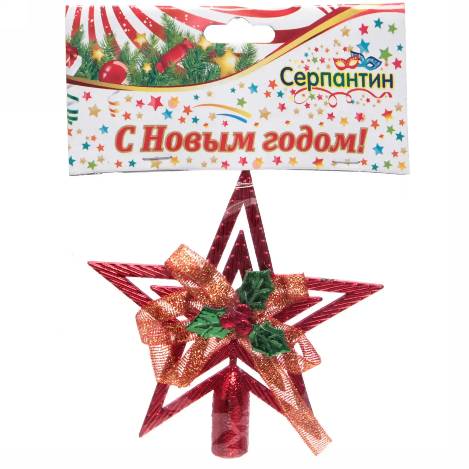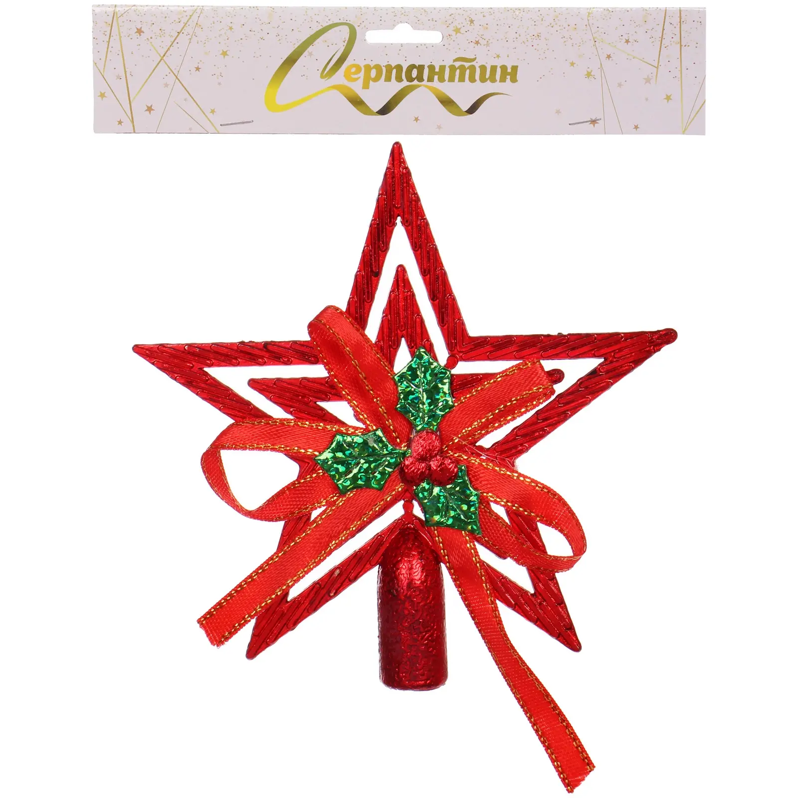 Звезда выполнена из прочного пластика, что обеспечивает её долговечность и легкость. Она украшена золотистой лентой и зелеными элементами, что придаёт ей объемный вид. Размер звезды составляет 9,5 см, что делает её идеальной для установки на верхушку ёлки. Не упустите возможность сделать ваш Новый год незабываемым с этой великолепной звездой!