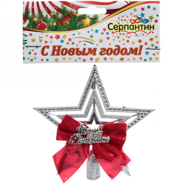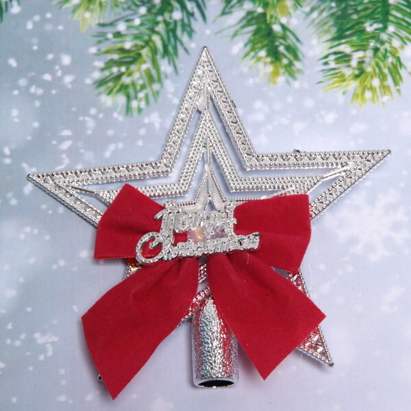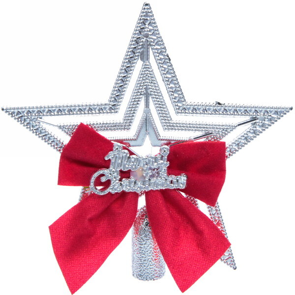 Звезда елочная 'Рождество' 9,5см, серебро/красный бант, пластик