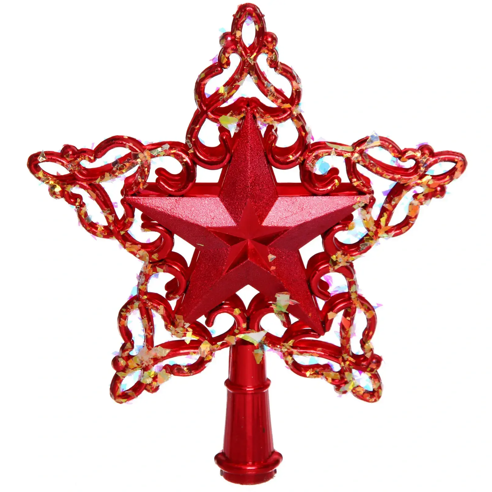 Звезда на ёлку 'Снежная звезда' 15см, красный пластик, блестящий декор