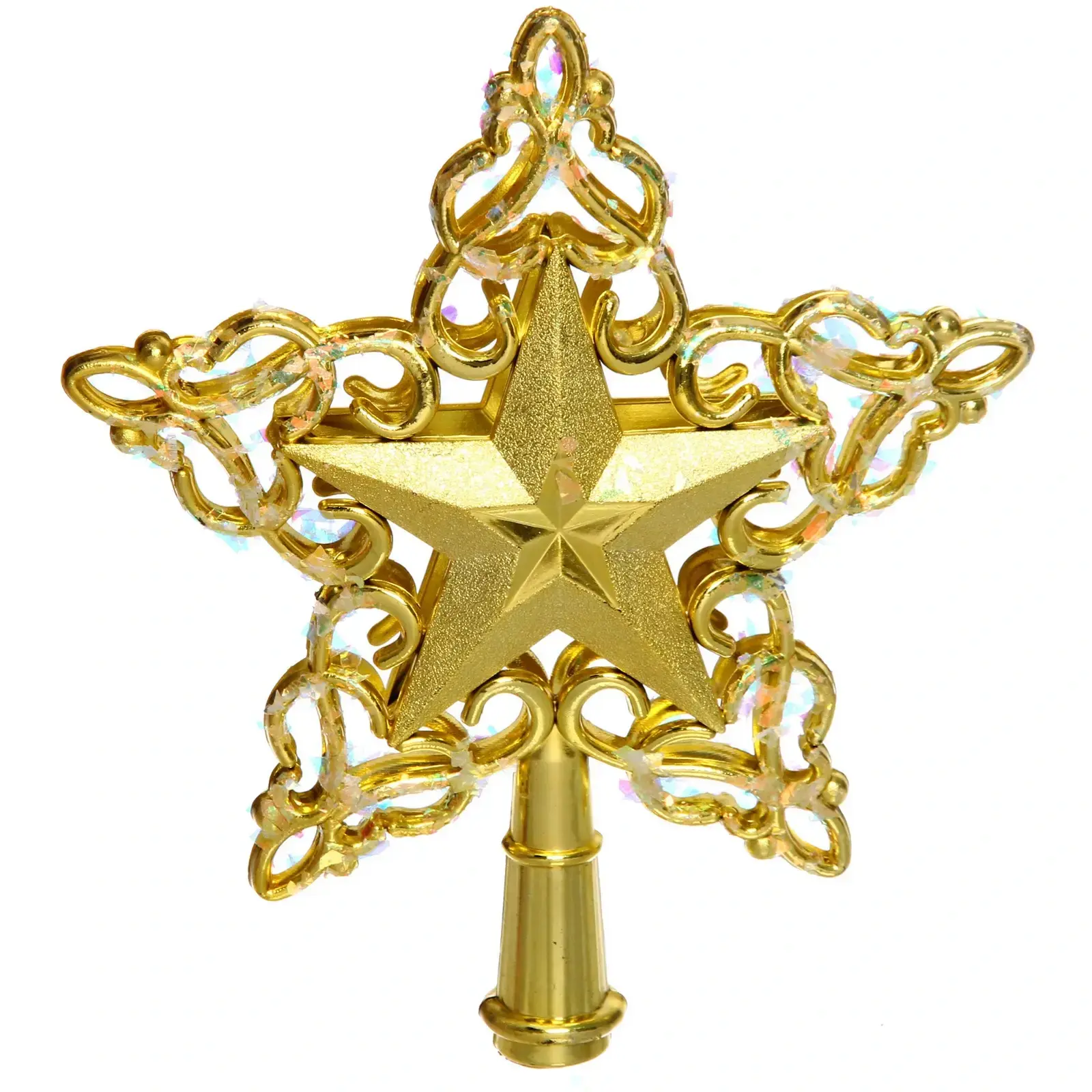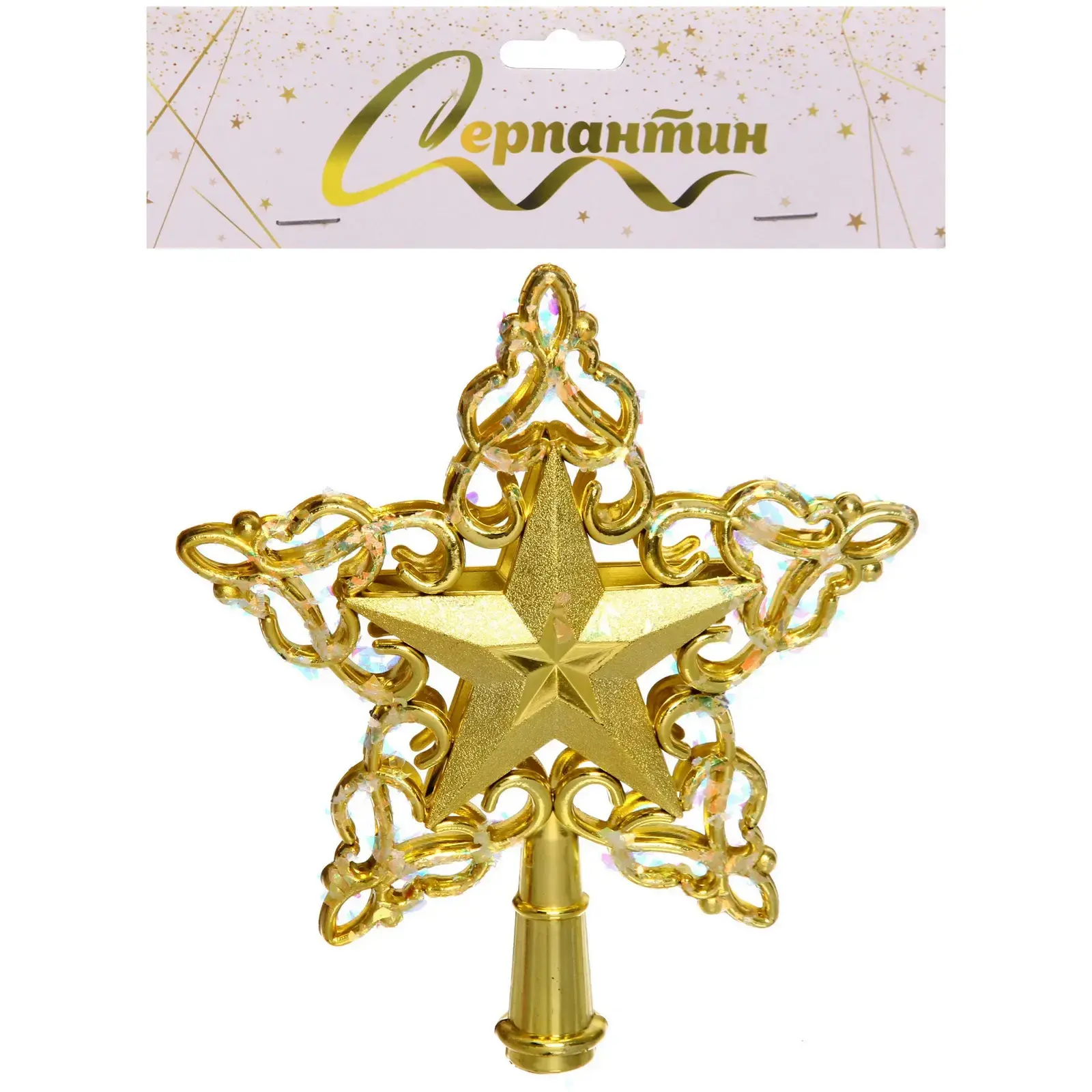 Звезда на ёлку 'Снежная звезда' 15см, золото, пластик, блестящая