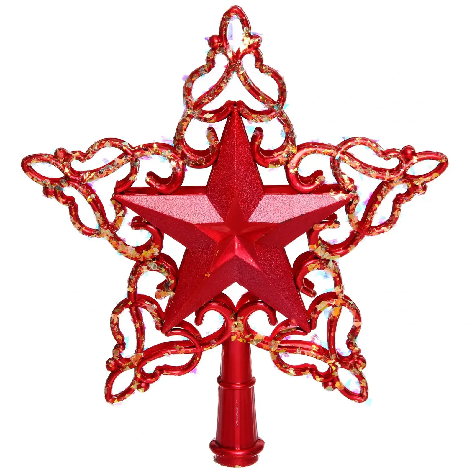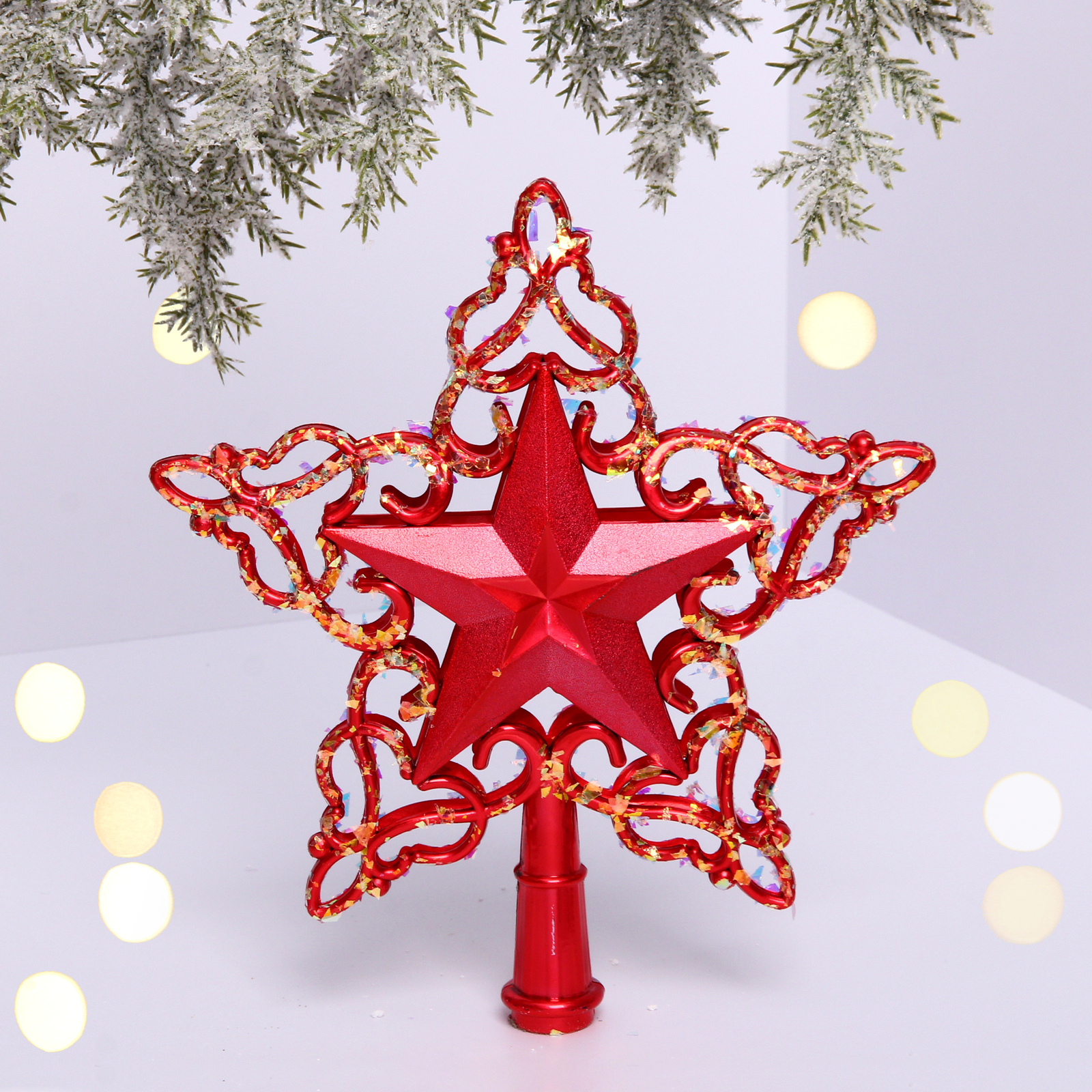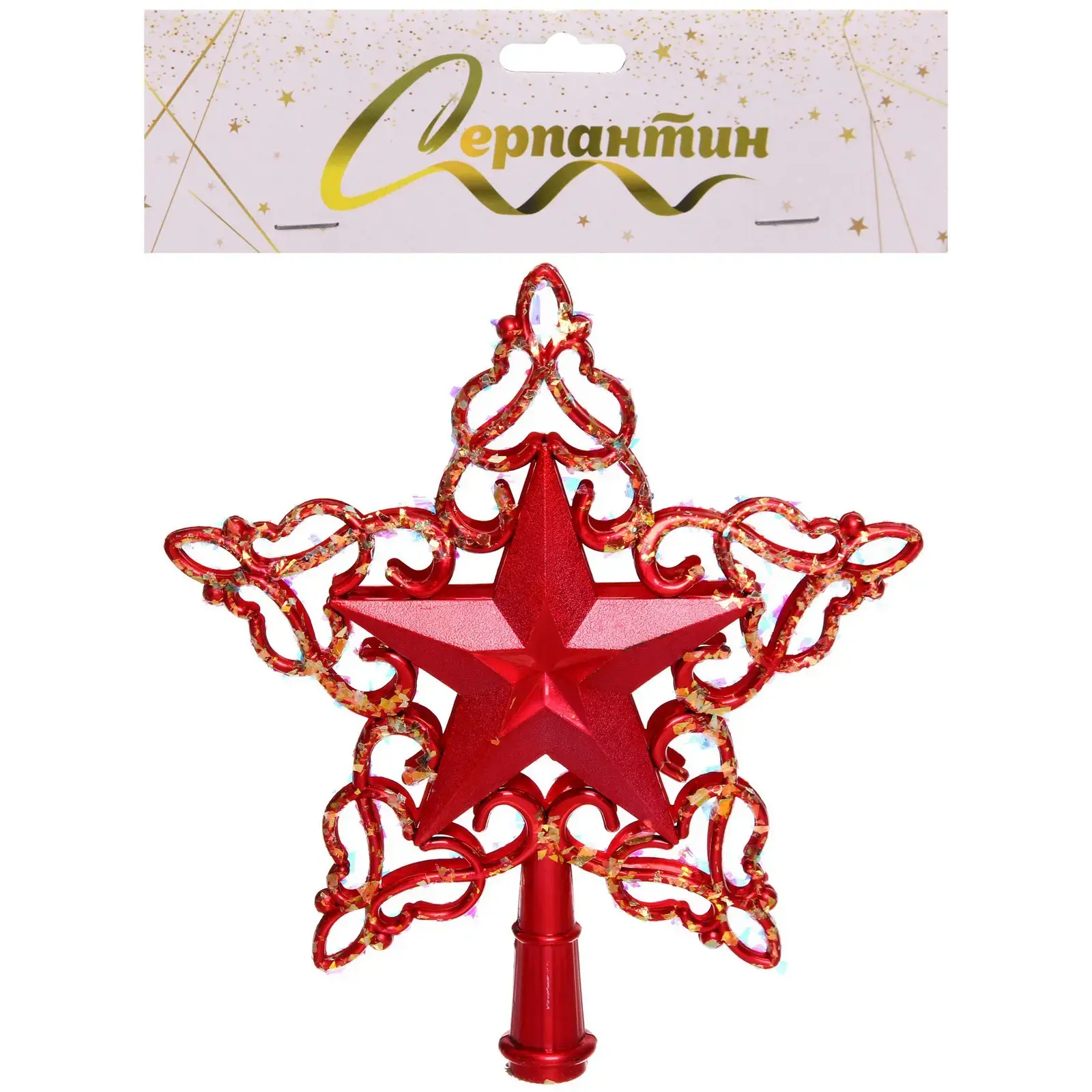 Звезда на ёлку «Снежная звезда» 20см, красный, пластик, с блестками