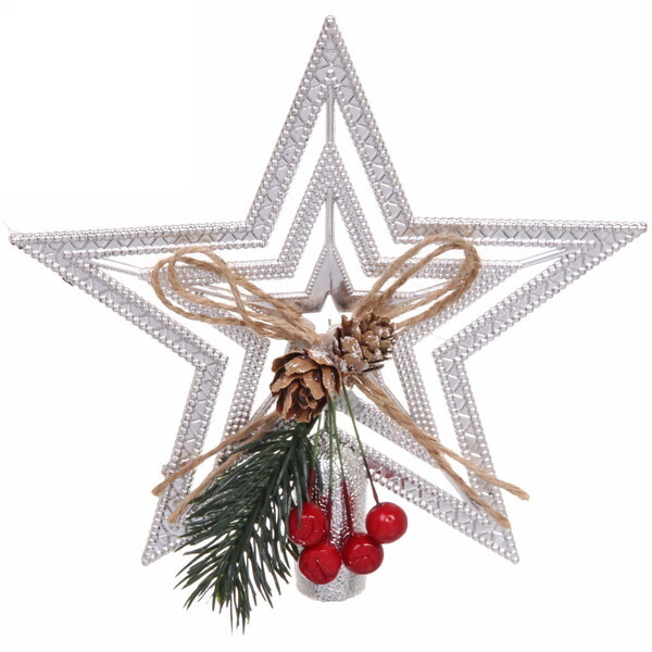 Эта звезда выделяется среди других новогодних украшений благодаря своей многоуровневой конструкции и блестящей отделке. Она не только красива, но и долговечна, так как изготовлена из качественного пластика. Элементы декора, такие как шишка, ветка хвои и красные ягоды, придают ей натуральный и уютный вид, что делает её идеальным выбором для создания праздничной атмосферы.