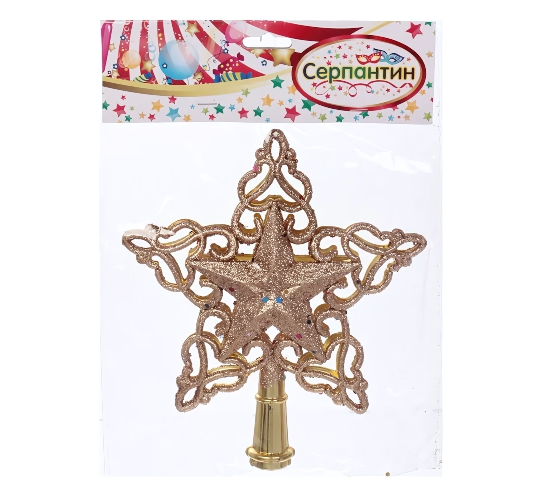 Звезда легко и надёжно крепится на верхушку ёлки благодаря прочной основе. Подходит для елок разного размера и стиля — от традиционных до современных. Отгружается один товар, цвет определяется случайным образом в рамках оттенка шампань.